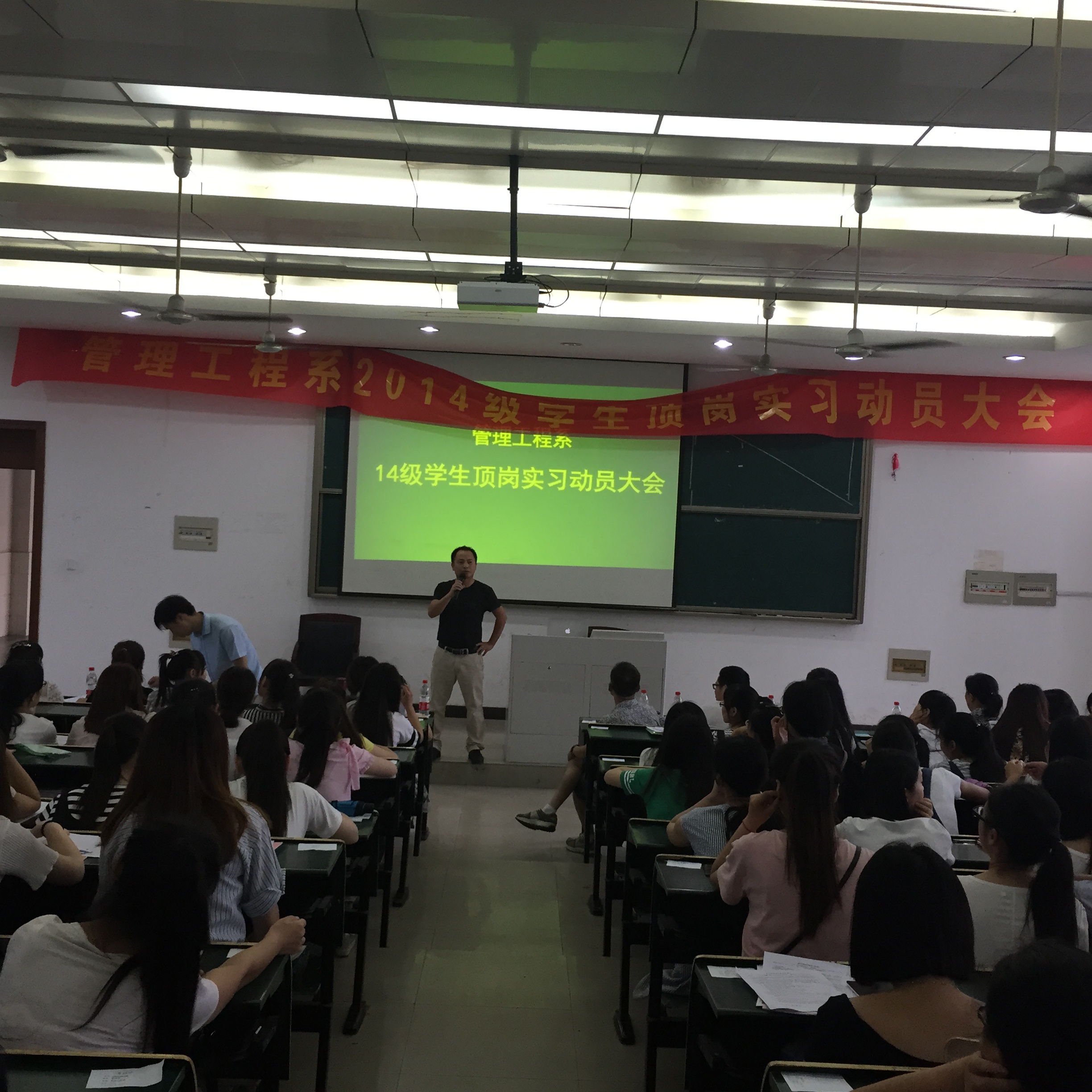 14级同学顶岗实习离校在即,为让全体14级同学清楚了解学院相关顶岗实习政策,更好的完成各项校外学习和工作任务,管理工程系于6月24日中午1:30在阶梯教室101举行2014级同学顶岗实习动员大会。系部领导,教学、学生工作秘书、顶岗实习指导老师及辅导员和14级全体同学参加了本次会议。