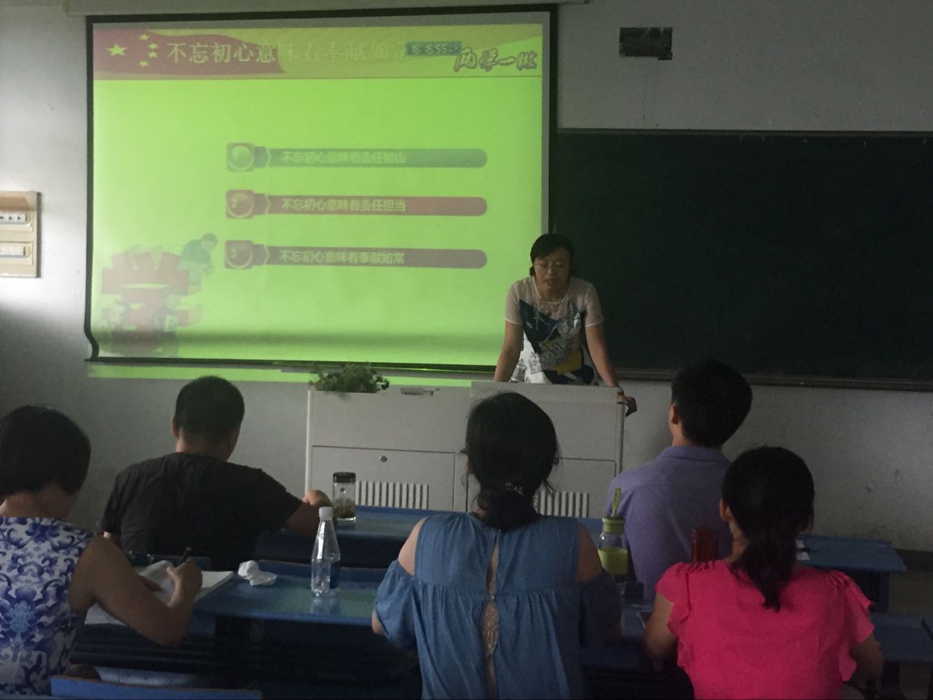 2016年7月16日上午8:00,管理工程系党支部在实训楼北602教室开展“两学一做”支部书记上党课活动。该系党支部副书记胡静同志为支部全体党员上了一堂题为“不忘初心,守责有担当,尽职讲奉献”的党课。胡静同志首先从提出“共产党员有哪些责任?”入手,指出入党誓词里“拥护党的纲领,遵守党的章程,履行党员义务,执行党的决定,严守党的纪律,保守党的秘密”就是共产党员的责任。提出第一点“不忘初心意味着责任如山”,作为共产党员,一定要努力做到心中有党、心中有民、心中有责、心中有戒,为党和人民的事业竭尽全力。第二点“不忘初心意味着担当如铁”。习近平总书记指出:“没有远大理想,不是合格的共产党员;离开现实工作而空谈远大理想,也不是合格的共产党员。”作为这个一名共产党员,就应该有铁一般的担当。第三点“不忘初心意味着奉献如常”,要为改革开放和社会主义现代化事业做出牺牲、做出奉献。最后,结合习近平总书记“七一”重要讲话精神,强调“不忘初心,继续前进”。