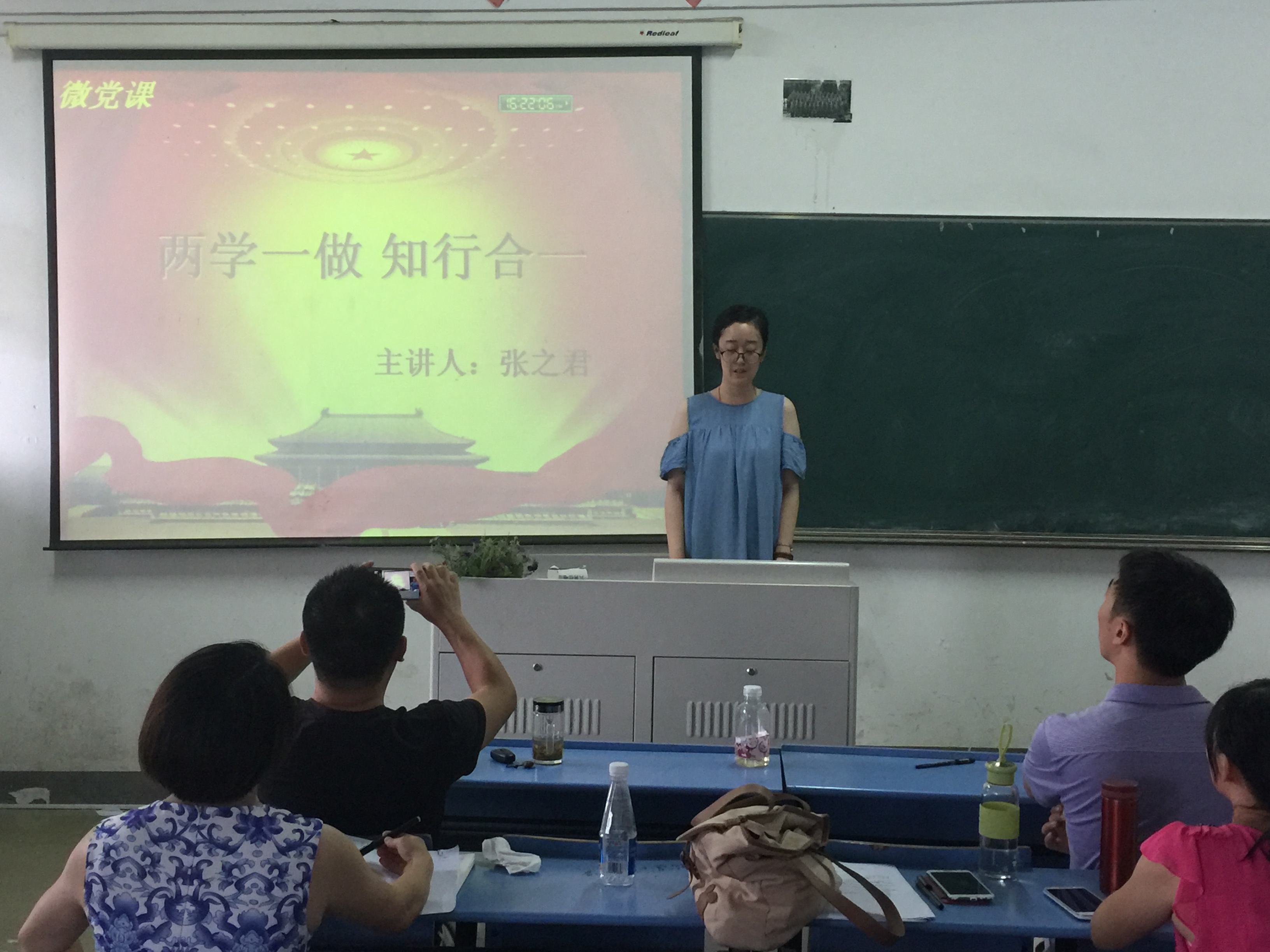 7月16日上午9:30,管理工程系党支部在实训楼北602教室开展“两学一做我来讲”普通党员讲微党课活动。潘小相老师为大家讲了题为《践行“四讲四有”,做合格党员》微党课,张荟超老师为大家讲了题为《普通党员教师如何发挥先锋模范作用》微党课,张之君老师讲了题为《两学一做,知行合一》微党课。三位老师都谈到了自己的学习体会,讲述了“学什么”、“如何学”、“怎么做”……,台下听课党员聚精会神,认真地做笔记,并进行深入的思考。