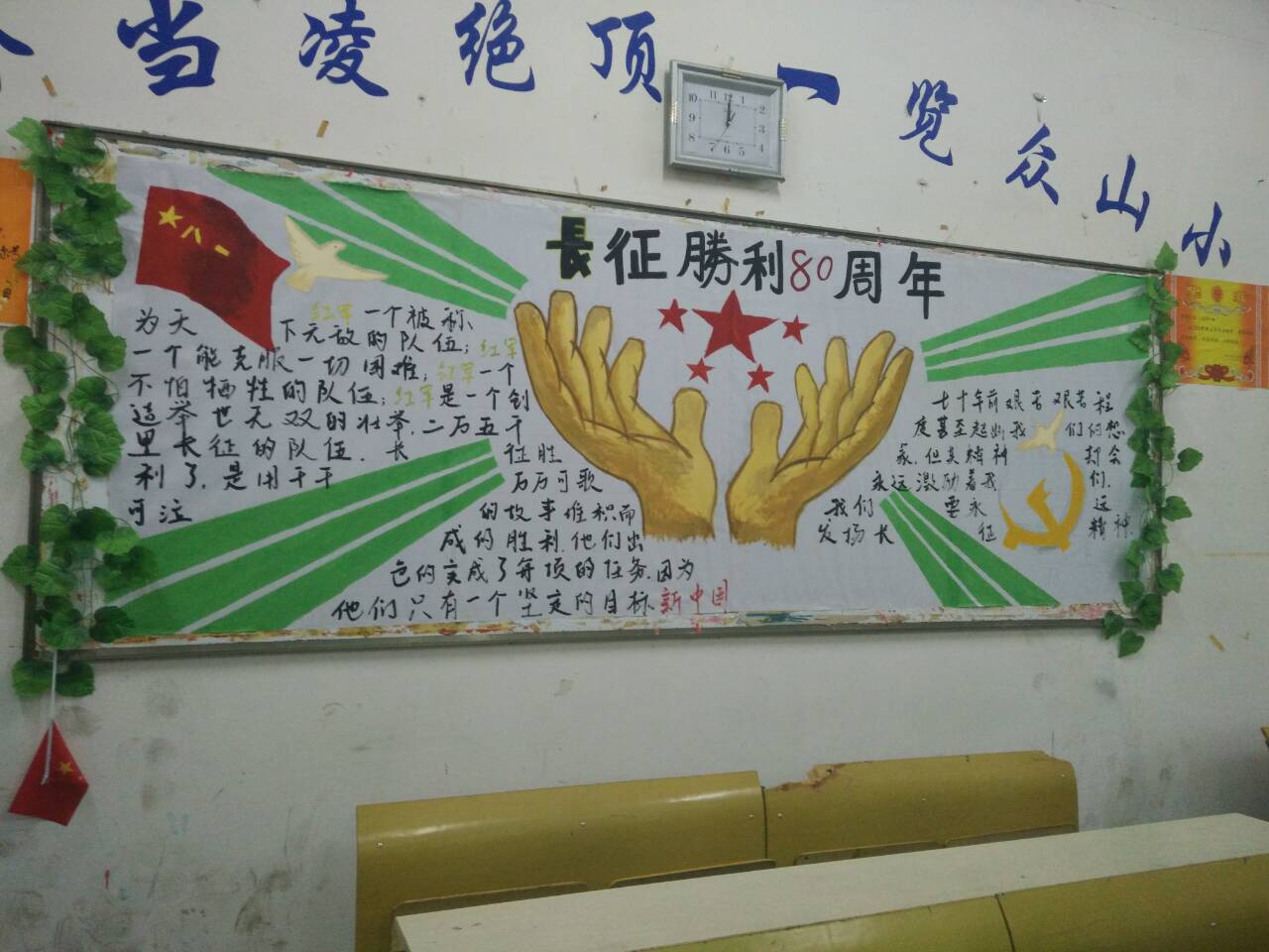 2016年10月26日管理工程系开展了纪念长征胜利八十周年板报评比活动,为大力宣传红军长征胜利的重大意义,宣传革命先烈在战争中所表现处的不怕牺牲、前赴后继、英勇战斗的爱国主义精神,学院将开展纪念红军长征胜利80周年板报设计大赛及评比活动。此次板报是以“不忘初心·秉志前行——纪念红军长征胜利80周年”为主题展开的,同学们用一幅幅精美的板报抒发出革命先辈长征万里的敬佩,此次活动不仅丰富了我系校园文化精神,更让当代大学生重温漫漫长征路,弘扬坚定爱国情。