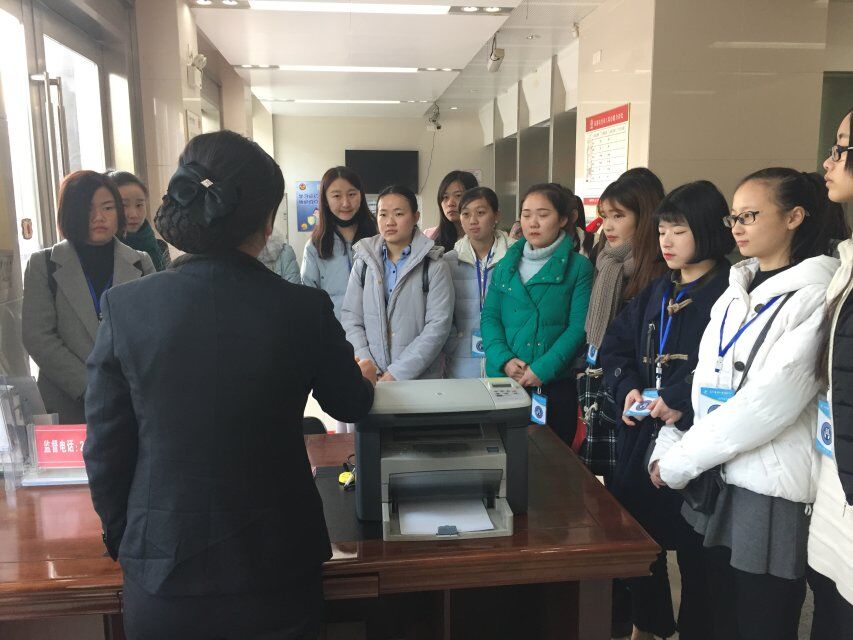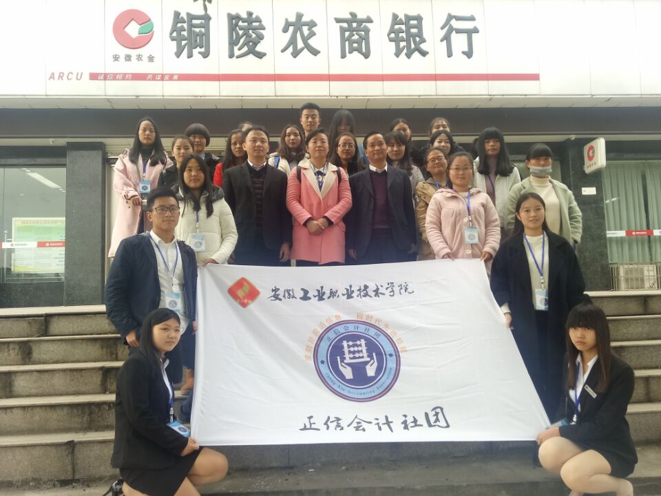 为了深入贯彻课堂理论知识与课外实践活动相结合的学院指导思想,正信会计社团于2016年11月26日—12月11日组织15级会计专业学生分四批对铜陵农商银行进行了为期半个月的参观学习活动。活动期间,社团指导教师胡静老师到场观摩指导并与铜陵农商银行行长就“校园贷”及“校园招聘”等问题深入交换意见。活动最后并与铜陵农商银行行长及业务经理进行拍照留念。