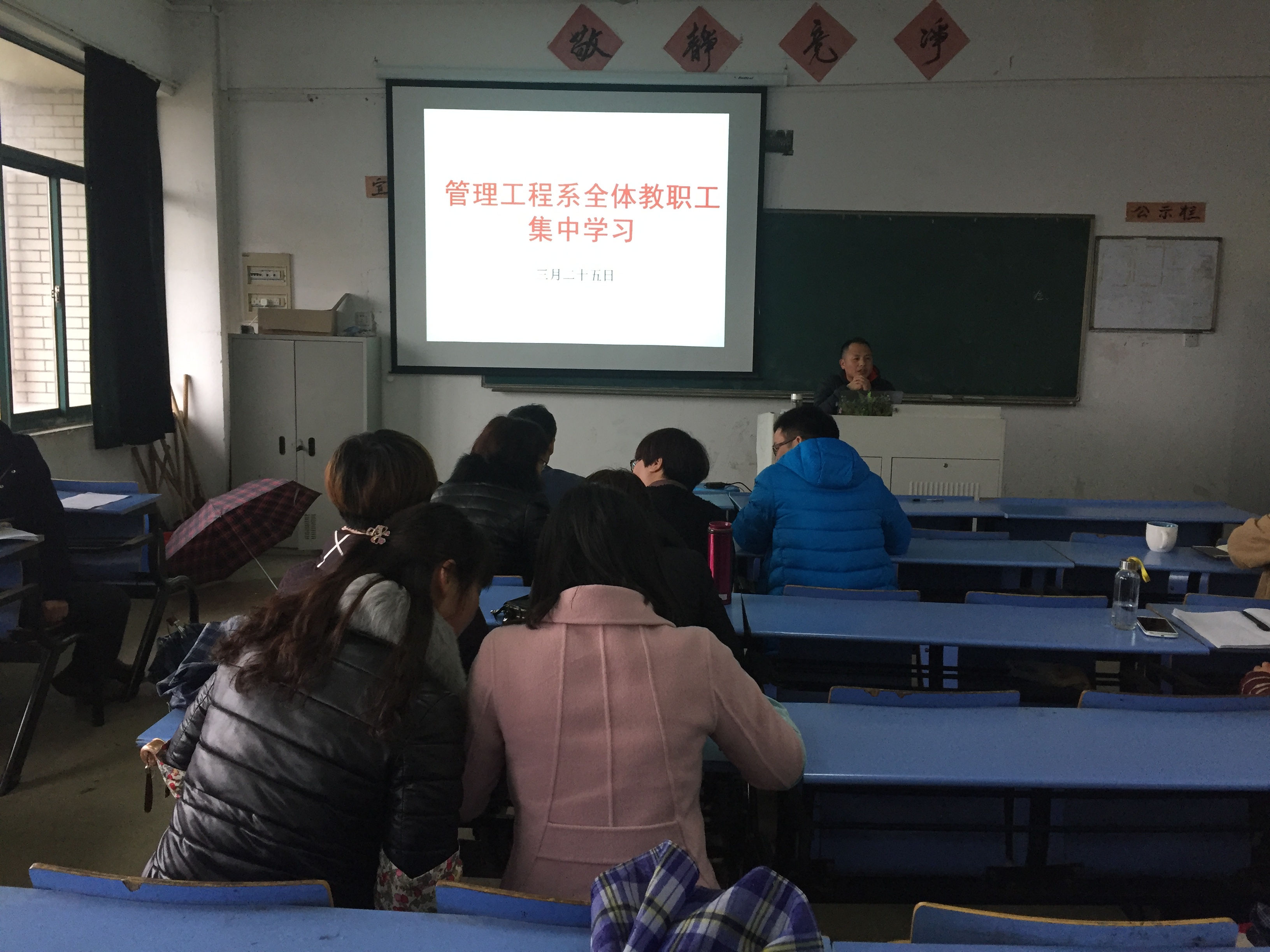为贯彻学院相关文件精神,管理工程系于3月24日下午2:40,在实训北楼602教室举行了专题学习会。系部领导、全体专兼职教师参加了本次学习会。
