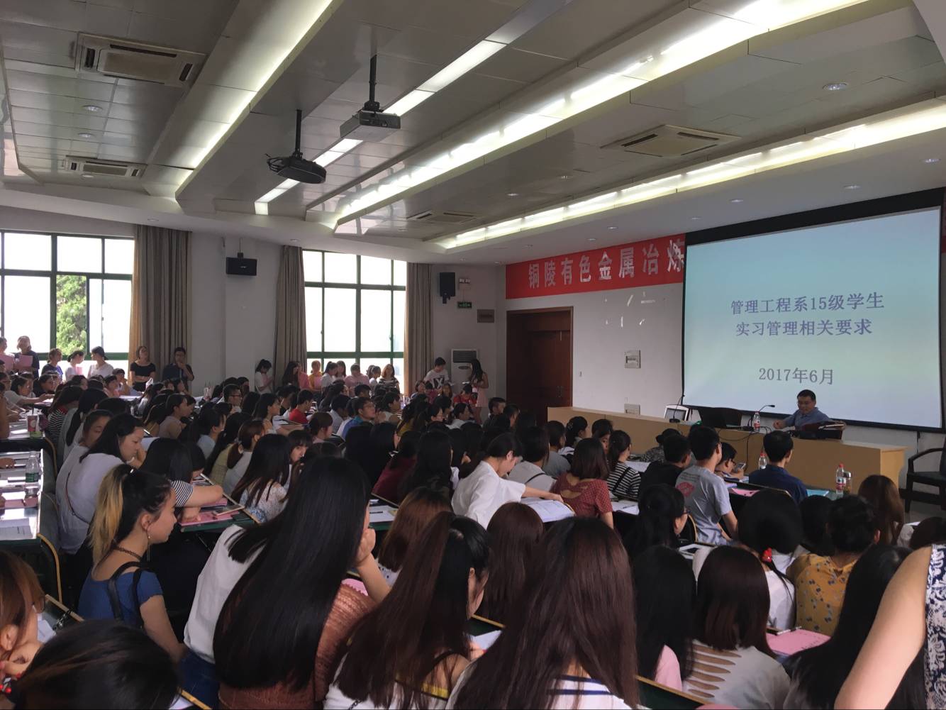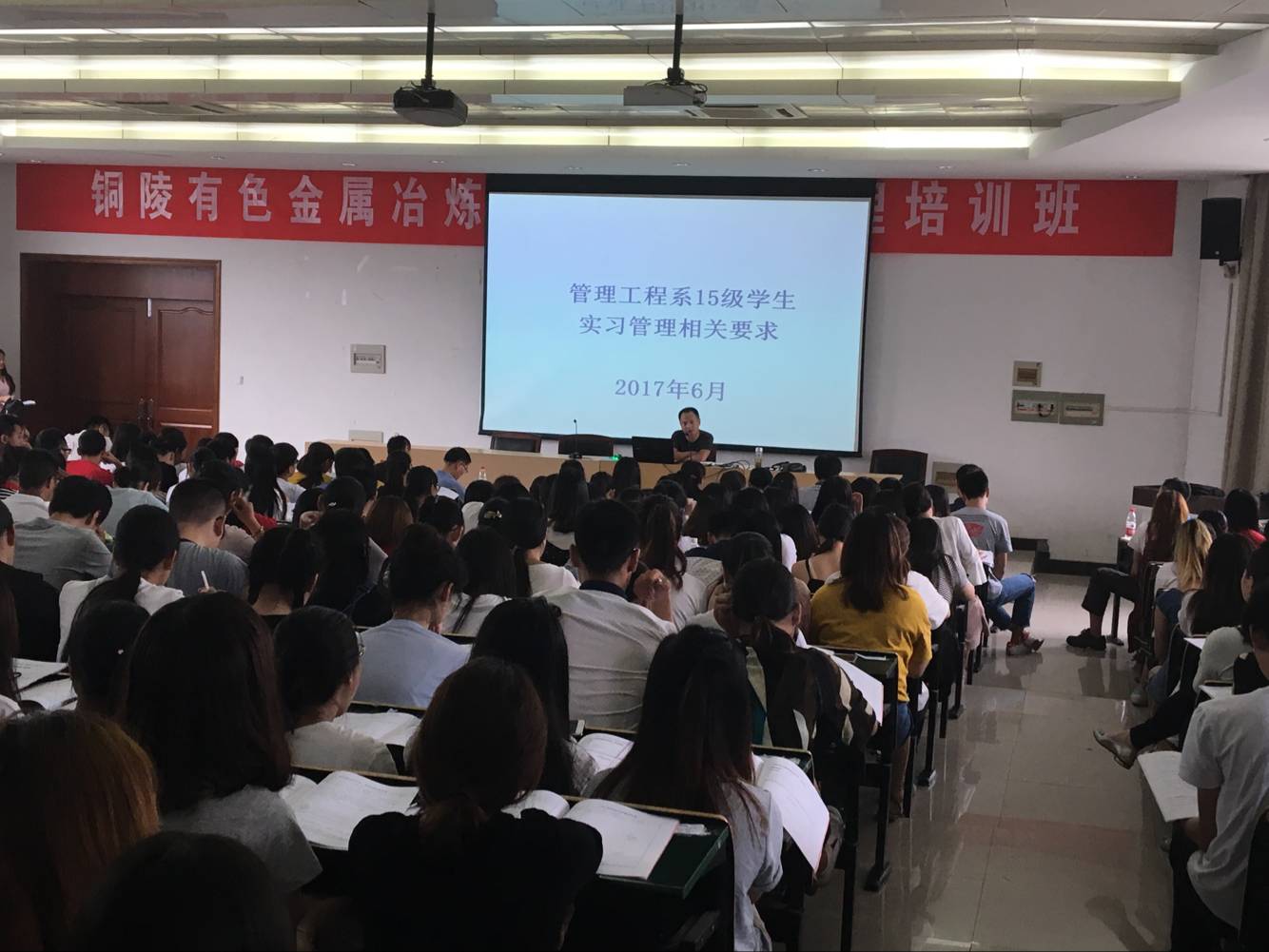 15级同学跟岗实习离校在即,为让全体15级同学清楚了解学院相关实习政策,更好的完成各项校外学习和工作任务,管理工程系于6月21日中午1:00在阶梯教室201举行2015级同学实习动员大会。系部领导,教学、学生工作秘书、实习指导老师及辅导员和15级全体同学共600余人参加了本次会议。