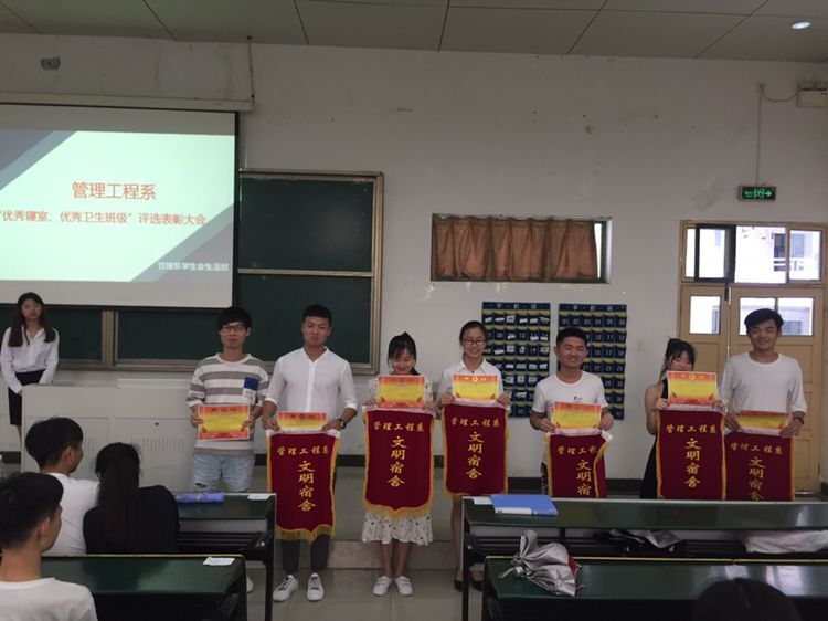 为推进文明建设,创造温馨舒适的校园环境,促进学生养成良好的习惯,2018年6月22日中午12:30,管理工程系在教学楼阶梯202教室举办双优评选表彰大会,表彰本学期以来卫生保持良好的优秀班级和优秀宿舍。系党支部副书记胡静老师出席大会并为受表彰的集体和个人颁发了奖状和锦旗。通过这次活动,让同学们认识到宿舍卫生安全的重要性,同时也促进了班级同学之间的和谐,毕竟班级是一个整体,需要大家共同努力,一起进步。