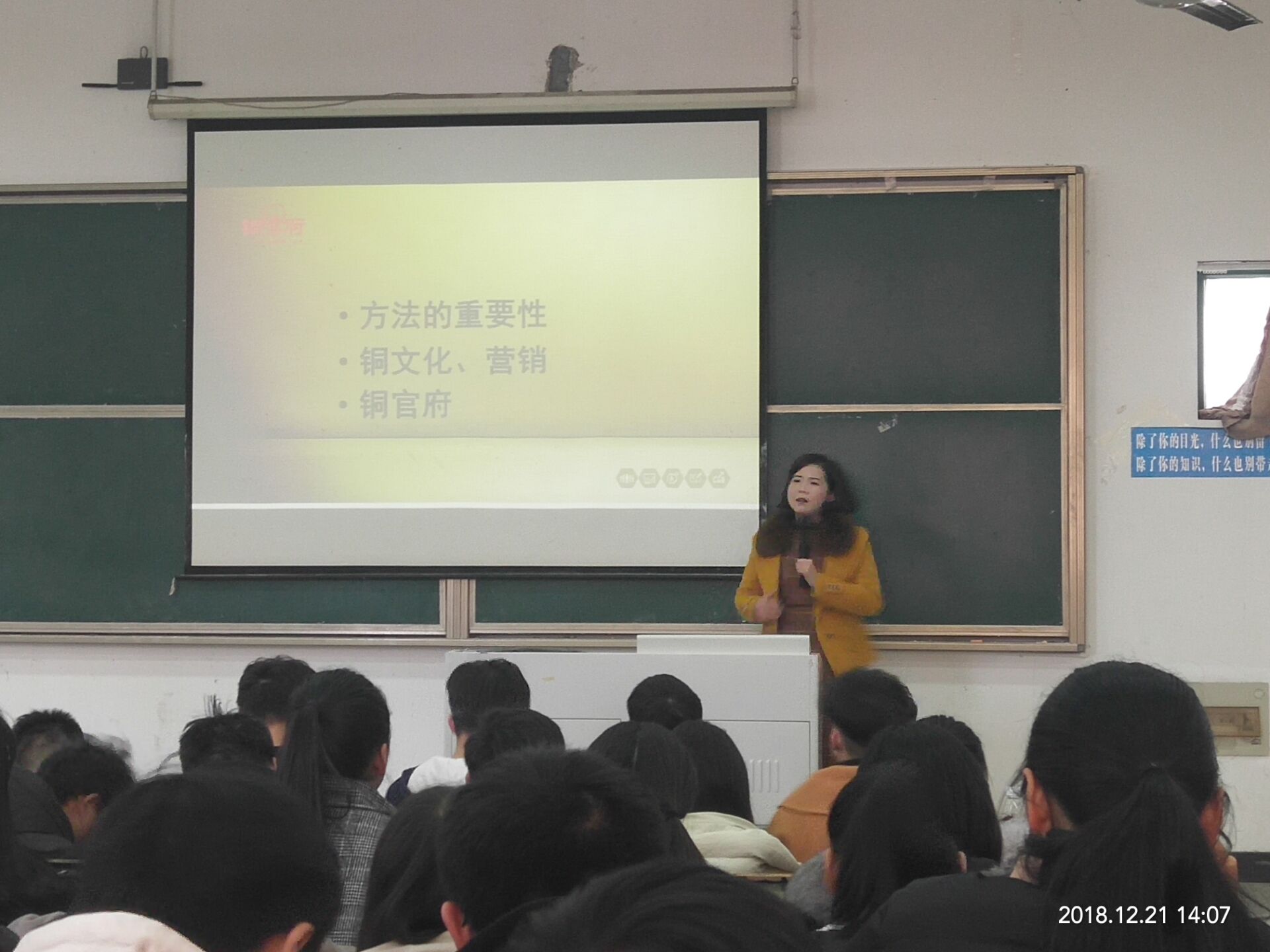 2018年12月21日下午,铜陵市铜官府文化创意股份公司副总经理兼营销总监李亚萍女士应管理工程系邀请在教学楼阶梯103教室进行市场营销专家讲座。