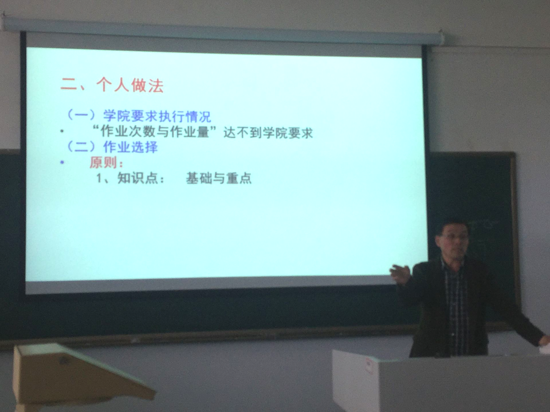 。会上汤大益书记、刘汉周主任、朱新维老师分别就自己所授课程的作业选择方式和批改情况与参会的老师进行了交流。通过分析和讨论,进一步明确了更适合当前学生特点的作业选择、布置和批改方法,因材施教,提高学生的学习效率。