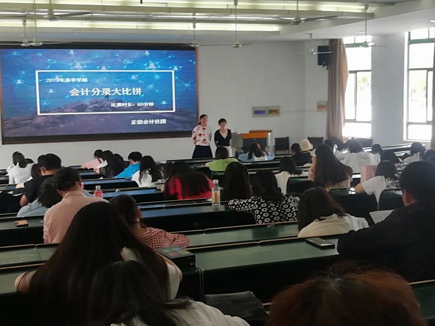 在安工学院职教活动周里,为了让同学更加深入地掌握会计专业知识和技能,beat365正信会计社团于2019年5月10日下午2:00在阶梯101报告厅举办了一场会计分录大赛,管理工程系18级会计专业全体同学均报名参赛。本次大赛除社团指导老师外还特邀六名经验丰富的专业老师担任现场评委。