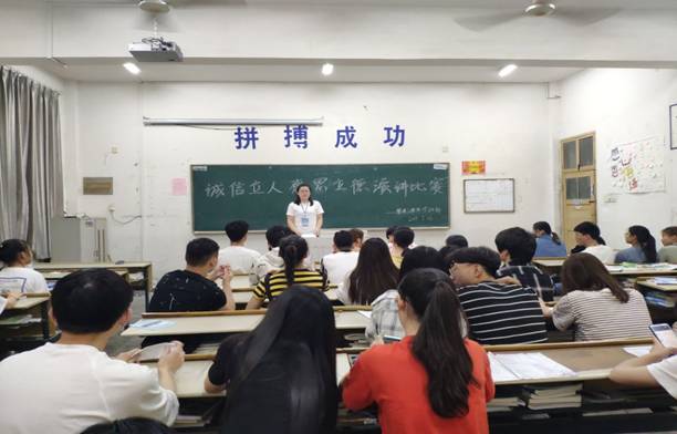 管理工程系于2019年5月23日晚7:00在309教室举办了以“诚信立人、感恩立德”为主题的演讲比赛。首先,主持人介绍了本次活动的主题和意义,然后演讲比赛正式开始,选手们自信十足,用慷慨激昂的语言描述了对“诚信立人,感恩立德”的理解,更有肢体语言的合理配合,博得了台下观众的阵阵掌声和声声加油,更有各位选手精彩的演讲内容不仅为此次比赛增加了更多的感想,更将现场的气氛一次又一次推向了高潮。经过一个多小时的激情朗诵,最终18会计一班纪淑艳、18市场营销班钟源、18市场营销班胡世超三名同学以其出色的表现,赢得了去院部比赛的机会。本次演讲比赛的目的是为引导学生树立正确的诚信道德、感恩意识和信用观念,激发受助学生面对困难刻苦学习、励志成才、报效祖国的强烈愿望,传递自身对于励志自强和感恩诚信的理解和感悟,而这些都能从这次演讲比赛中体现出来。