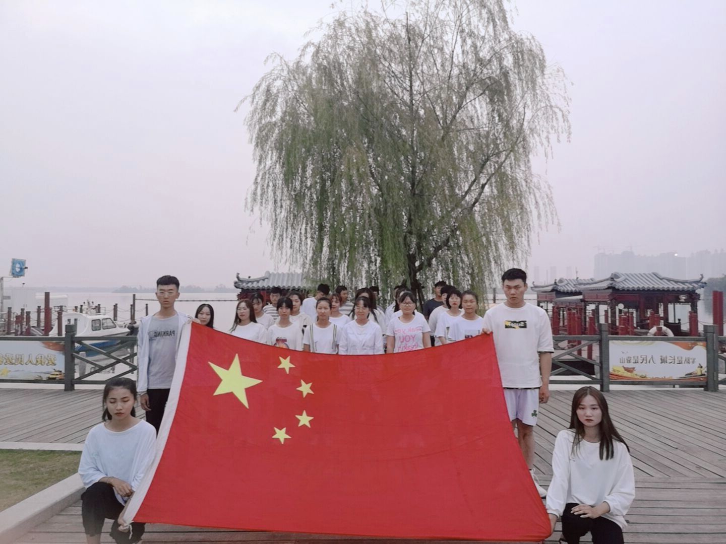 为了庆祝新中国成立70华诞,管理工程系举办了“心目中的祖国快闪,喜迎建国70周年”主题系列活动,引导青年学生弘扬爱国主义精神和勇于担当、主动作为的进取精神,激励青年学生为实现中华民族伟大复兴的“中国梦”不懈奋斗。9月26日下午,19级管理系新生在胡静老师、左永刚老师的带领下来到铜陵西湖湿地,一部分新生踏着昂扬的军姿,齐唱爱国歌曲,好似一股正气响彻云霄,引得行人注视拍摄以及伴唱;其他同学也同样采取各种形式来抒发自己的爱国情怀。天色渐渐黑了,但是同学们不愿离去,盘坐在一起,手持小国旗,听着红色经典,歌唱爱国歌曲,将此次快闪活动推向了高潮,最后活动结束之际,胡静老师深情地对同学说,恰同学少年,希望同学们努力进取,踏实学习,长本领,以实际行动为中华伟大复兴而奋斗。