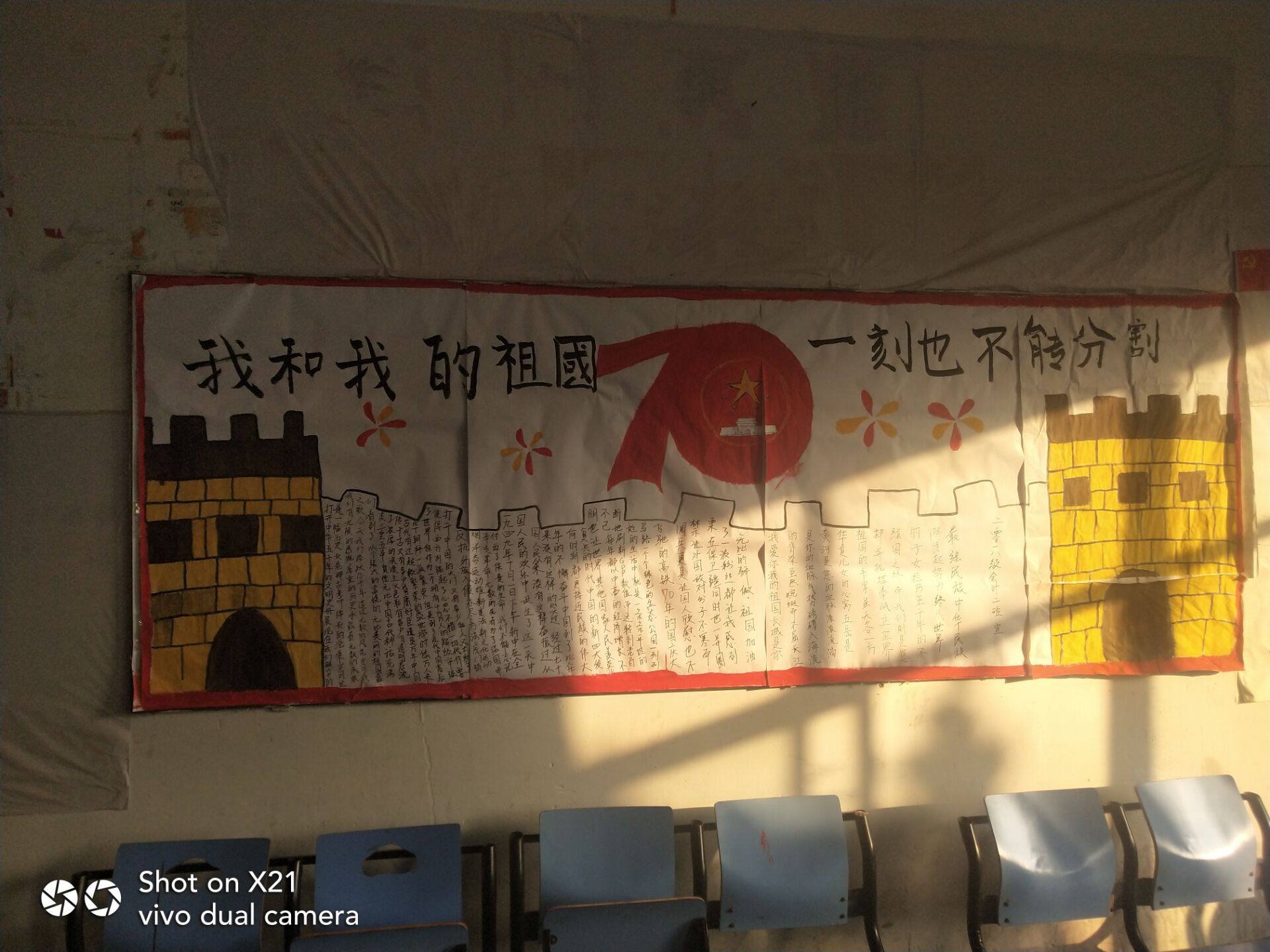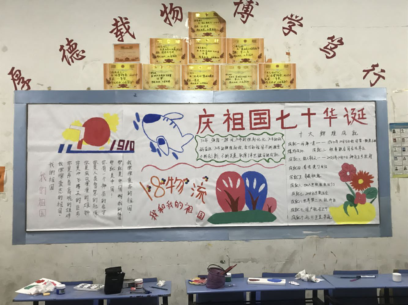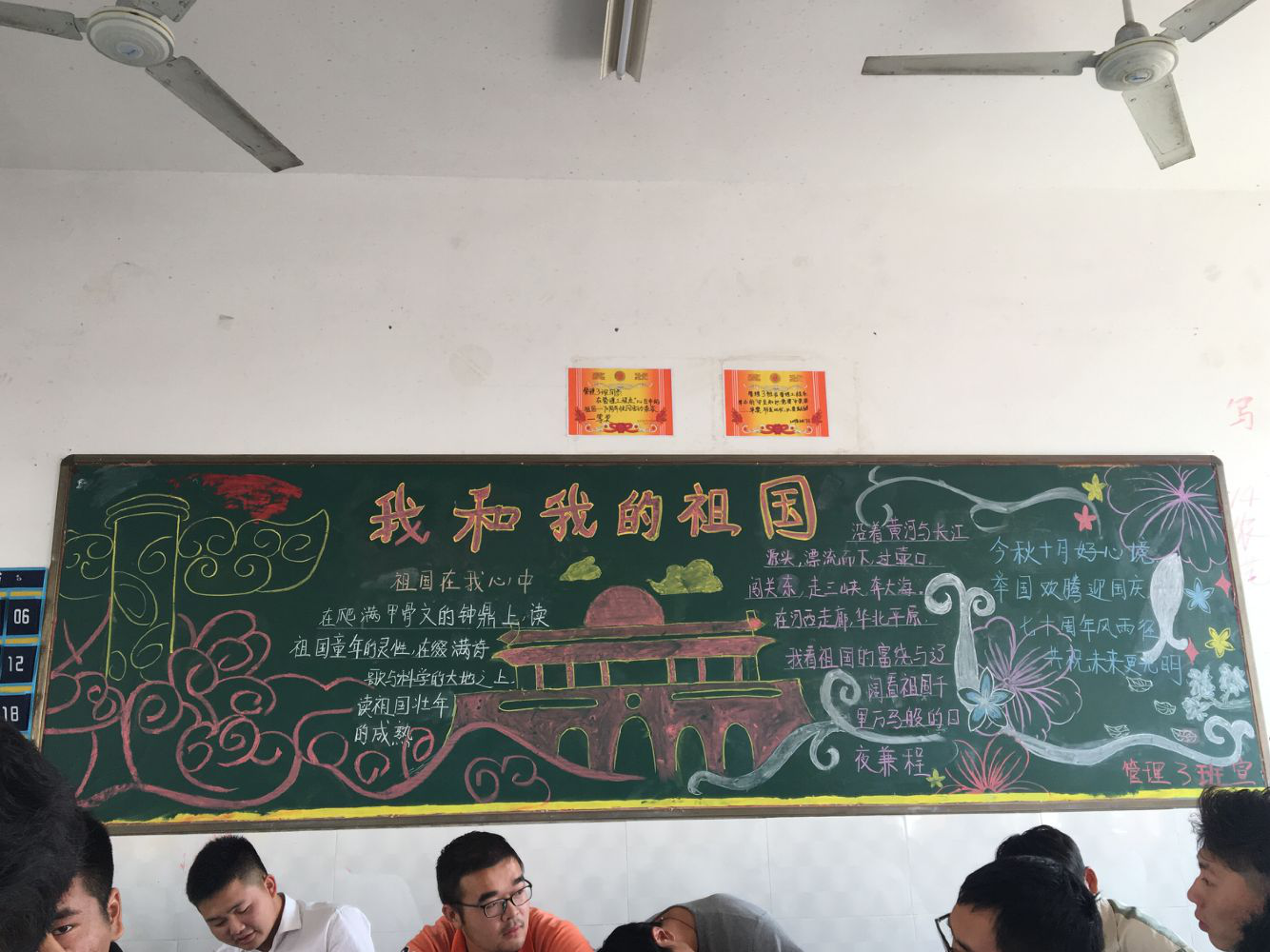 今年是中华人民共和国成立70周年,70年风雨岁月峥嵘,70年谱写奋斗华章。为深入学习贯彻习近平新时代中国特色社会主义思想和党的十九大精神,热重庆祝中华人民共和国成立70周年,唱响爱国主义主旋律;2019年10月16日,应全院开展“我和我的祖国”主题板报评选活动,向新中国70华诞献礼的号召。管理系8个班级均参与此次活动,各个班级都把他们对于祖国的热爱用极具艺术性的板报形式表现出来,再由宣传部的干事一一拍照下来,由管理系团总支左永刚老师和学生会各部门部长进行评价。之后选出三个优秀板报集体参与学院评选。
