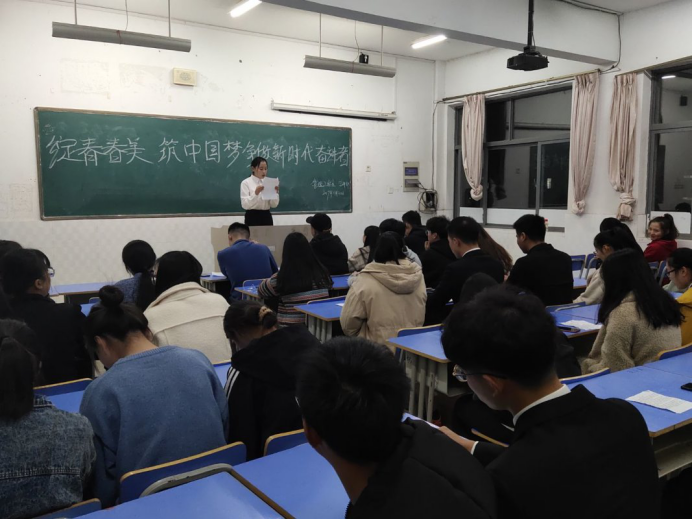 为深入学习贯彻习近平新时代中国特色社会主义思想和党的十九大精神,结合当代大学生正值青春年华,在新时代下应奋勇当先,砥砺奋进实现强国梦的时代使命。为培养学生爱国荣校的情怀,发倔和培养语言表演类人才,推动校园文化建设。由系团总支左永刚老师,学生会主席及各部门部长、干事参与的绽青春美,筑中国梦,争做新时代奋进者的演讲比赛活动开始了。本次活动于2019年11月20日在西湖校区503教室由学研部举办。