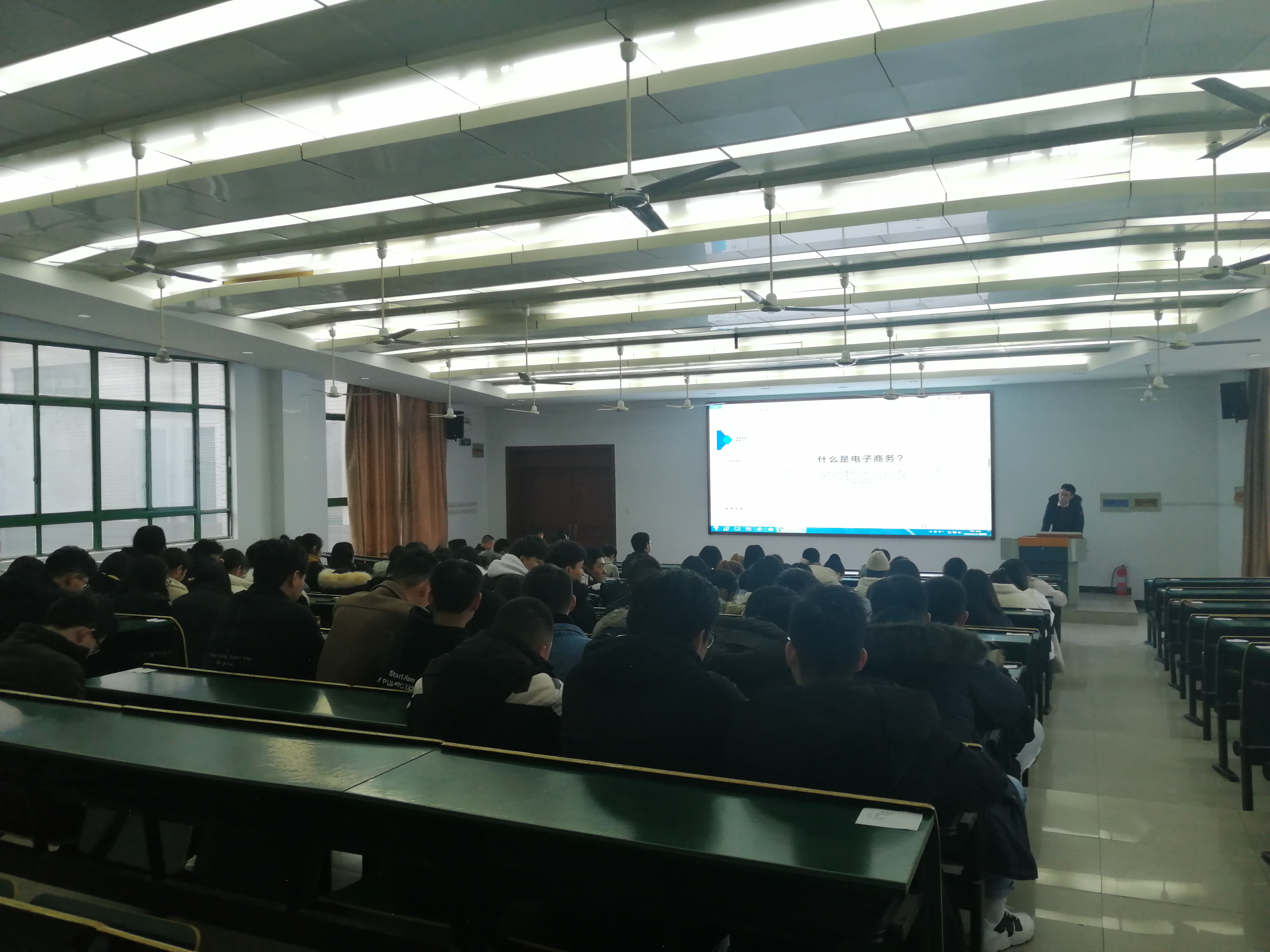 2019年12月26日周四下午四点,阶梯教室101,管理工程系邀请铜陵铜欣祥旅游工艺品有限公司运营经理洪亮先生来beat365做专家讲座,讲座主题:电子商务运营。18电商、19电商、18营销、19营销学生及部分专业老师近百人聆听了讲座。