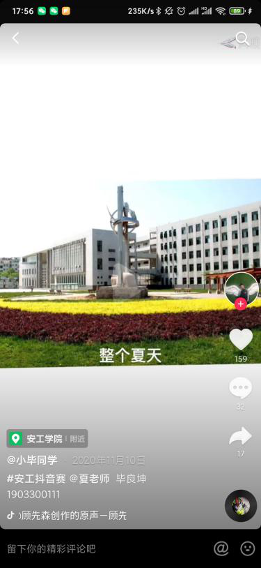当下互联网和移动智能终端的不断发展,为短视频的发展提供了基础条件。人们生活节奏加快,碎片化时间需要被充分利用,为短视频发展提出了要求。因此,学院于20秋举办抖音短视频比赛,比赛吸引全校近200名学生参加。学生作品丰富多样,充分展示了当代大学生积极向上的精神风貌。