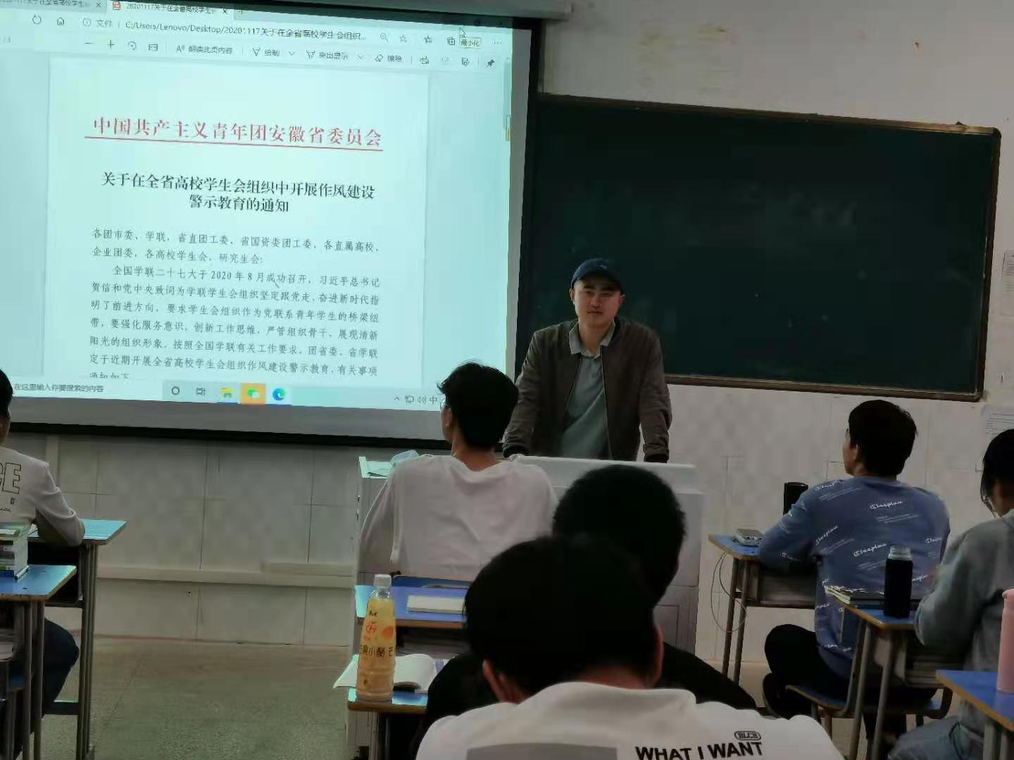 为认真贯彻落实全国学联二十七大精神,进一步深入学习《关于落实共青团和学联对高校学生会(研究生会)指导管理责任的若干规定(试行)》、《关于学联学生会工作人员改进作风服务同学的若干规定》文件精神,坚持从严治会,展现清新阳光的组织形象。管理工程系团总支学生会11月19日下午在西湖校区召开作风建设警示教育专题会议。本次会议由团总支书记左永刚主持,学生会全体成员参加。