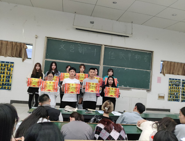此次活动文艺部干事的精心布置,并在部长的安排下积极做好迎宾,主持,治安,记分等工作,参赛选手按照抽签顺序进行自我介绍,第依次进行表演。经过激烈的赛程最终决出一等奖一名,二等奖两名,三等奖三名,优秀奖四名。