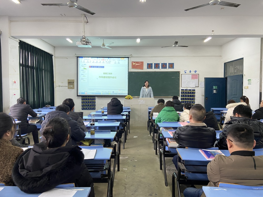 会上管理系曹主任首先传达了学院教代会报告精神,就陈院长在教代会报告中的2022年学院主要成绩和2023年学院重点工作总体部署进行了详细讲述,并转达了李书记在学院教学例会上的要求,指出了系部2023年创新重点工作部署和安排。后面吴主任对2023年春季学期教学工作安排进行了说明,就新学期教学常规工作的具体安排和要求进行了详细阐明,让各位老师抓好常规教学,积极参与教科研和教学能力大赛,抓紧落实马上的新学期教学准备工作。最后胡书记也对本学期的工作作风建设提升提出了相关要求,进一步加强作风建设是实现高质量发展的保证,是提高教职工队伍素质和能力的现实需要,全体教职工群策群力,多为学校的未来发展多关注多建言。会上各参会老师一致表示将齐心协力,以良好的精神面貌迎接新的学期,将本学期的各项工作做好,为学校的高质量发展建设再上一个台阶做出自己的贡献。