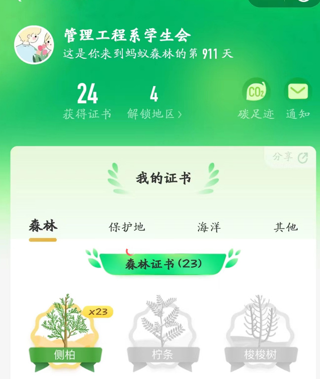 2022年,管理工程系利用线上线下互动的方式,开展植树活动,探索出在新冠肺炎疫情期间保护生态环境志愿活动的新模式。2022年度管理工程系共种植40棵树,品种包含胡杨、侧柏、华山松、油松、樟子松等。本次活动运用支付宝蚂蚁森林开启了线上云植树,以“合种”先锋林或同学林的方式,让同学们都能够加入种树队伍一同灌溉。号召广大学生践行习总书记“绿水青山就是金山银山”理念,做一名合格的绿色环保践行者、传播者、建设者。