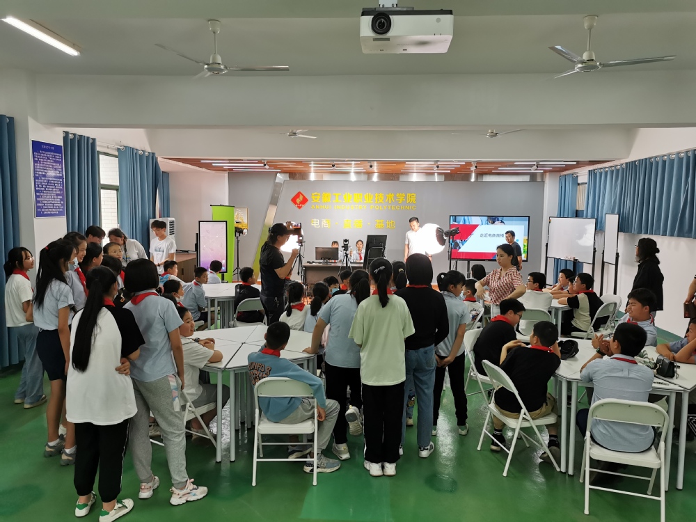 5月16日,管理工程系组织开展以“技能成就梦想”为主题的职业教育启蒙培训。来自建安小学50多名学生走进管理工程系物流实训室和电商直播实训室,在实操中体验动手乐趣,开拓学习视野、增强职业认知。