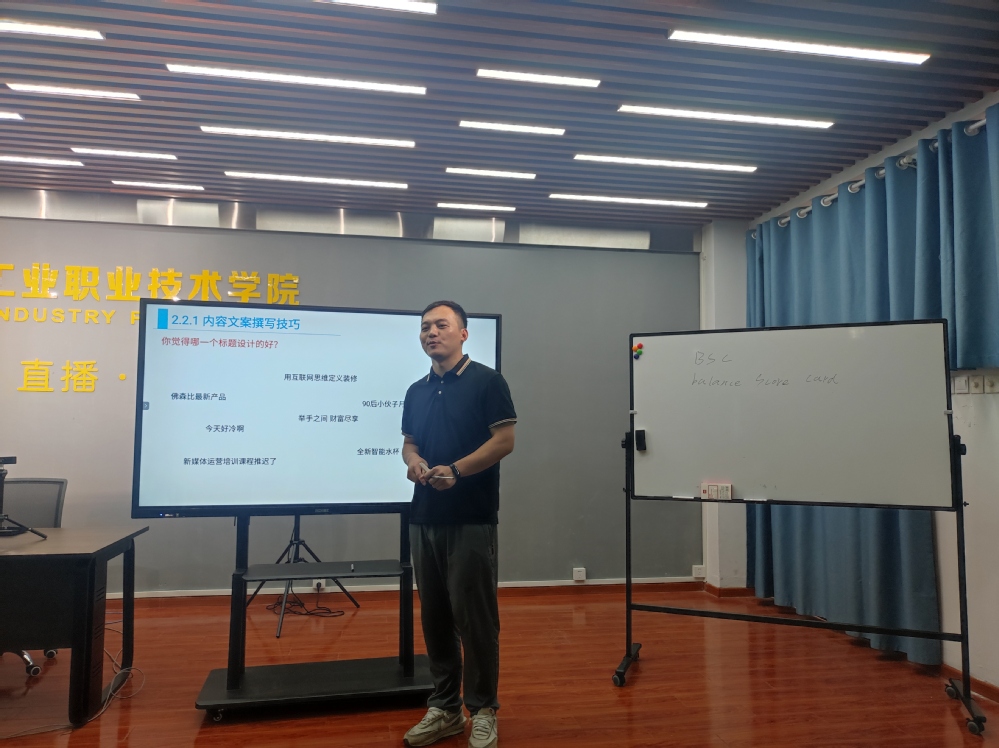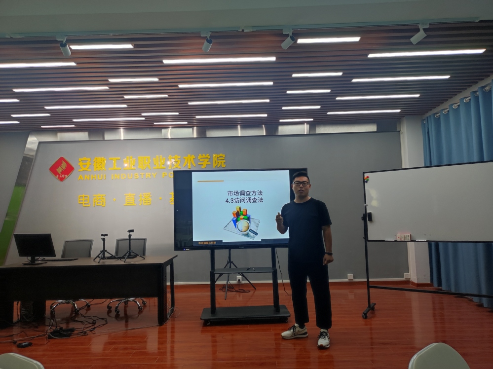 为了进一步加强青年教师的培训与交流,提高教师的专业素质和教学能力,夯实教师驾驭课堂教学的基本功。6月9日下午,管理工程系在实训楼南楼304电商直播实训室举行了一次针对青年教师的公开课活动,管理系主任曹有智、书记胡静、副主任吴涛及全体专兼职教师参加了此次听课活动。