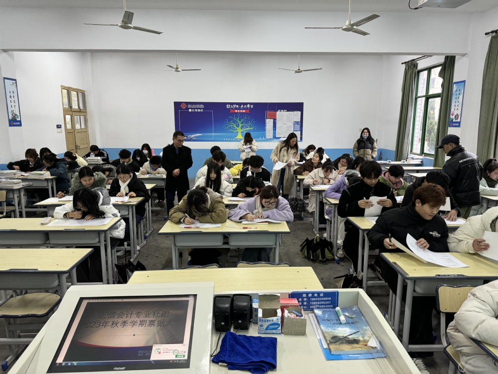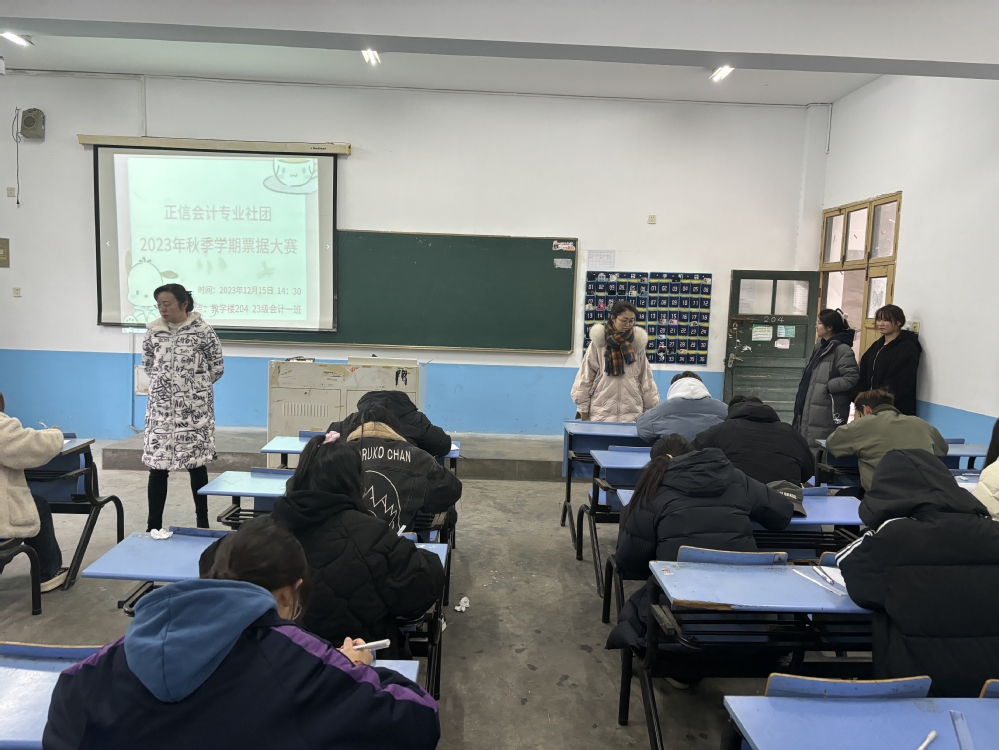为配合基础会计课程的学习,检验会计专业学生的学习成果,管理工程系于2023年12月15日14:30-15:30教学楼201、202、203、204教室,隆重举办正信会计专社团“票据填制大赛”活动。