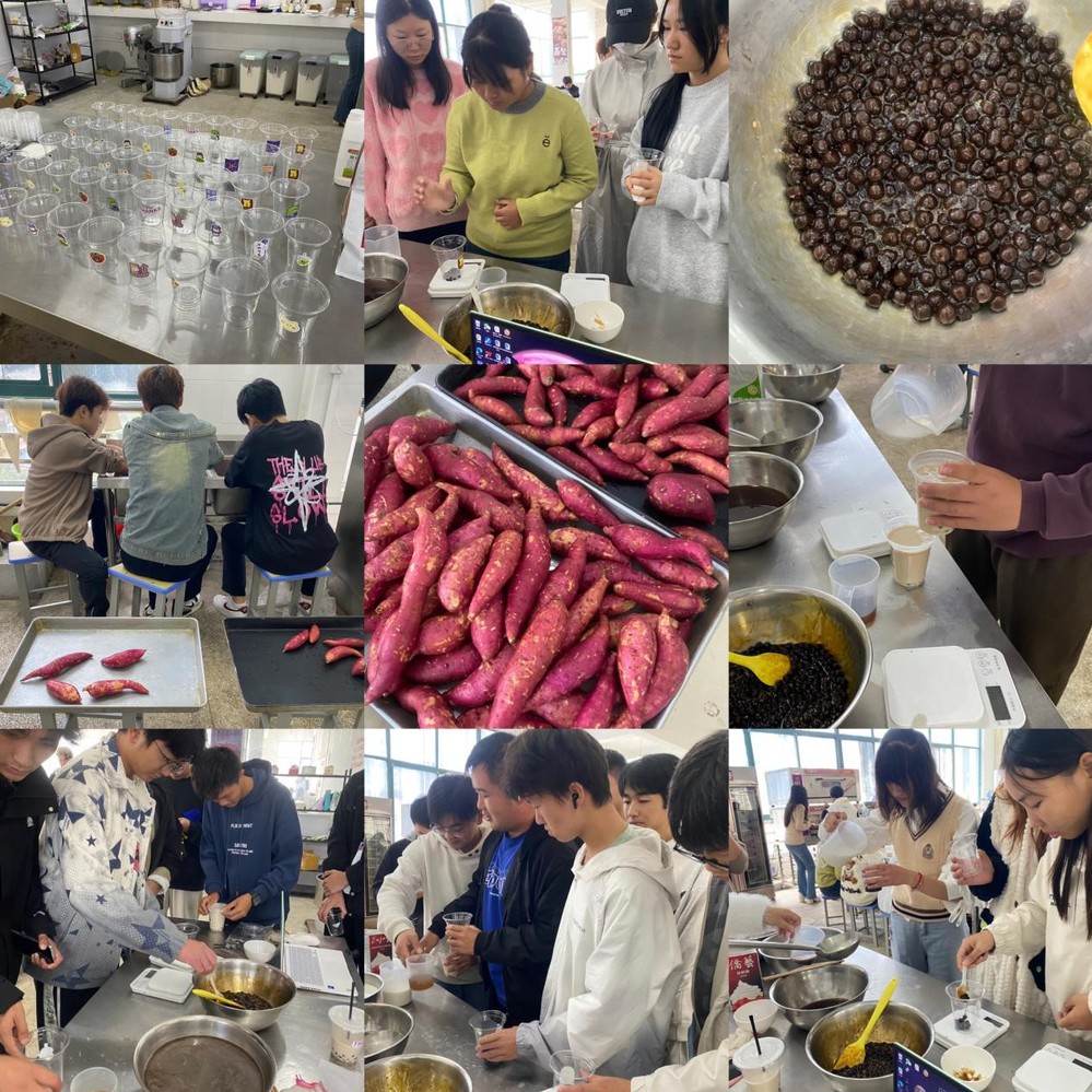 活动现场,活动负责人提前为每组准备好了地瓜、黑糖珍珠、杯子和牛奶材料,将同学们按照制作流程分成六祖人员,一组七个人,首先分配每组的地瓜数量和杯子数量,然后组织他们每组人员去进行烤地瓜和制作奶茶,他们都很积极的学习如何制作奶茶,怎样烤地瓜,大家都很积极的真正对待这次活动,想在动手实践的过程中从烹饪社团中学习到美食烘培手艺,来丰富自己的课余时间。