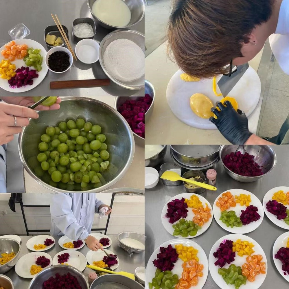 活动当天,社团的成员们早早地来到活动场地,精心布置现场,并准备了充足的制作材料,包括糯米粉、奶油、芒果、奥利奥饼干碎等。随着参与同学们的陆续到来,活动正式开始。在社团成员的指导下,同学们们纷纷洗手消毒,做好准备化身成为“烘焙大师”。他们分组合作,有的负责搅拌糯米粉、制作面皮,有的负责切芒果、打发奶油,还有的则负责包制和装盒。整个过程中,大家分工明确,配合默契,忙得不亦乐乎。经过一个多小时的努力,一个个粉圆鼓鼓、晶莹剔透的雪媚娘终于制作完成。这些雪媚娘不仅外形美观,而且口感极佳,软糯的面皮包裹着浓香四溢的芒果馅和奥利奥饼干碎馅,让人垂涎欲滴。大家纷纷拿起手机,拍下自己的劳动成果,并迫不及待地品尝起来。