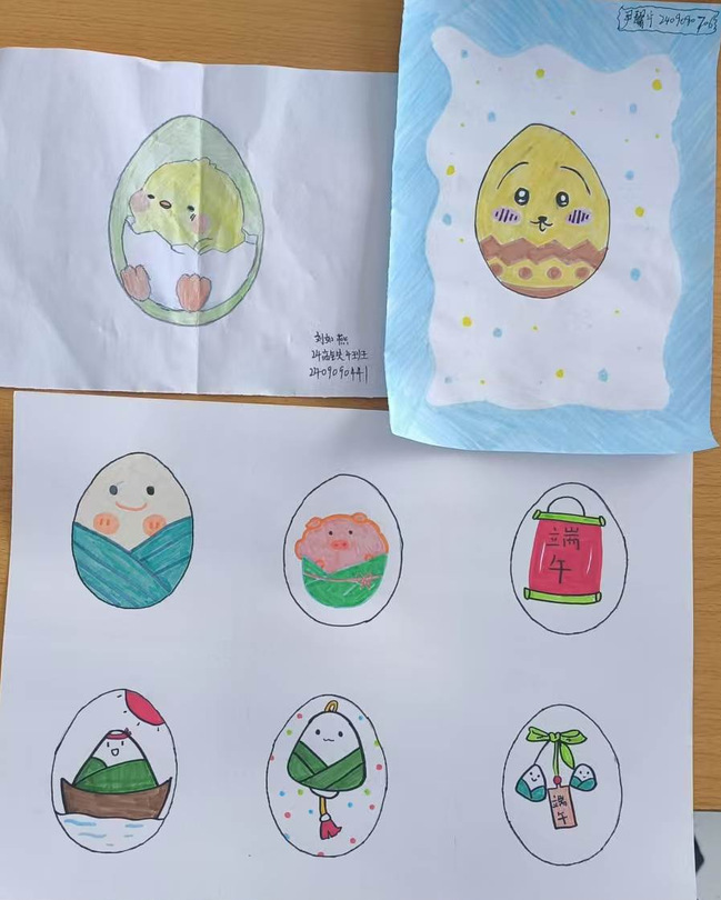 参与活动的同学们充分发挥想象力,在鸡蛋上绘制出龙舟、粽子、艾草等端午元素,还有同学创新性地融入了现代艺术风格。经过两个小时的精心创作,一件件色彩斑斓、创意十足的作品陆续完成。