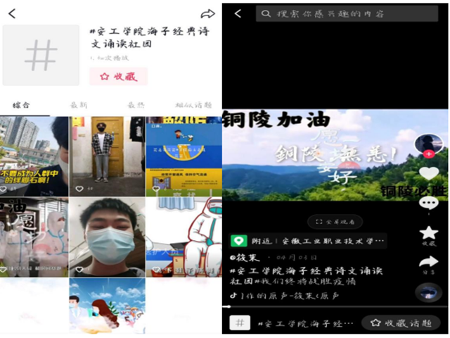 2022年4月5日,因疫情封宿舍的情况下,成功举办了安工学院海子经典诗文朗诵社团“钢铁脊梁,致一线战疫人”短视频活动。由社长姜俊哲副社陈俊丽和其他各部门部长以及活动成员共56人参与。