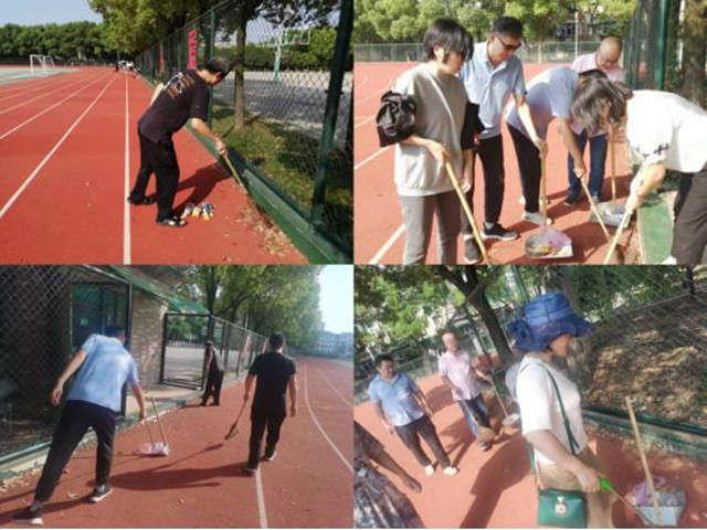 活动中,党员们积极参与,纷纷拿起扫帚、垃圾铲等工具,对田径场等周边场所进行认真清扫,对杂乱堆放的物品进行整理。党员同志干劲十足,以劳动为荣,乐在其中。