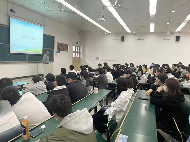孙老师从“全面依法治国的根本遵循”,“坚持走中国特色的社会主义法治道路”以及“努力建设法治中国”等三个方面解说了习近平法治思想的时代背景、核心要义和实践要求。同学们表示,专题讲座内容丰富、浅显易懂,有利于我们更好学习领会习近平法治思想并将其转化为思想自觉、政治自觉和行动自觉。