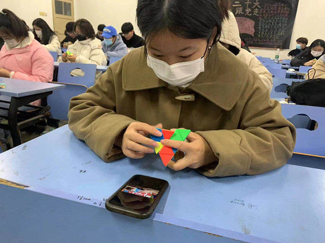 2022年,12月4日下午,在天井湖校区教学楼502教室成功举办了应用数学社团“金字塔魔方”速度竞赛活动。本次活动由社团指导老师指导,社长杜玢晗、副社长盛娇娇组织。参与本次活动的成员共有48名同学。