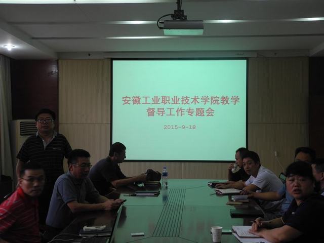 为贯彻落实教育部《关于深化职业教育教学改革全面提高人才培养质量的若干意见》,进一步强化教学规范管理,确保各类教学活动有序、规范开展,提高教学质量。 9月18日下午,学院在行政楼一楼会议室召开2015-2016学年第一学期教学督导工作专题会。学院常务副院长李庆峰,院长助理、督导办主任汪志锋以及教务处、实训管理中心负责人、系部主任、教研室主任、专业带头人等参加了本次会议,会议由院长助理汪志锋主持,教务处对本学期教学督导工作安排作了宣讲。