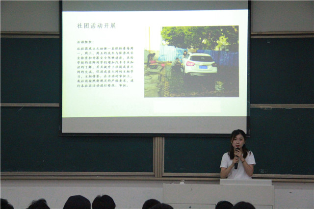 汽车驾驶社团负责人就获得全省“十佳社团”荣誉分享了一些心得,强调了坚持是一种责任,坚信付出就一定会有回报,社团负责人要有“功成不必在我”的无私付出精神。同时也不忘为自己的社团“带盐”,希望大家多多支持社团9-10月份的“汽车免费洗车打蜡”活动。