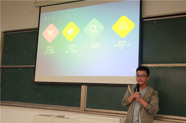 电子创客负责人则是手把手教大家如何完整的开展一次社团活动:活动开展前要做整体谋划,准备材料、工具,进行人员安排、路线安排,制定具体方案,然后跟指导老师沟通,确定最终方案。提前1-2周在到梦空间发布活动,及时关注报名情况,以便对方案及安排做出实时调整。活动现场一定要有专人负责拍照,而且要多拍照片,便于后期挑选。活动结束后1-2天内将总结写出来,并且把活动的新闻报道挂网。负责人也可以征求社员的意愿,在一学年中举办1-2次的跨届跨专业的相关活动。