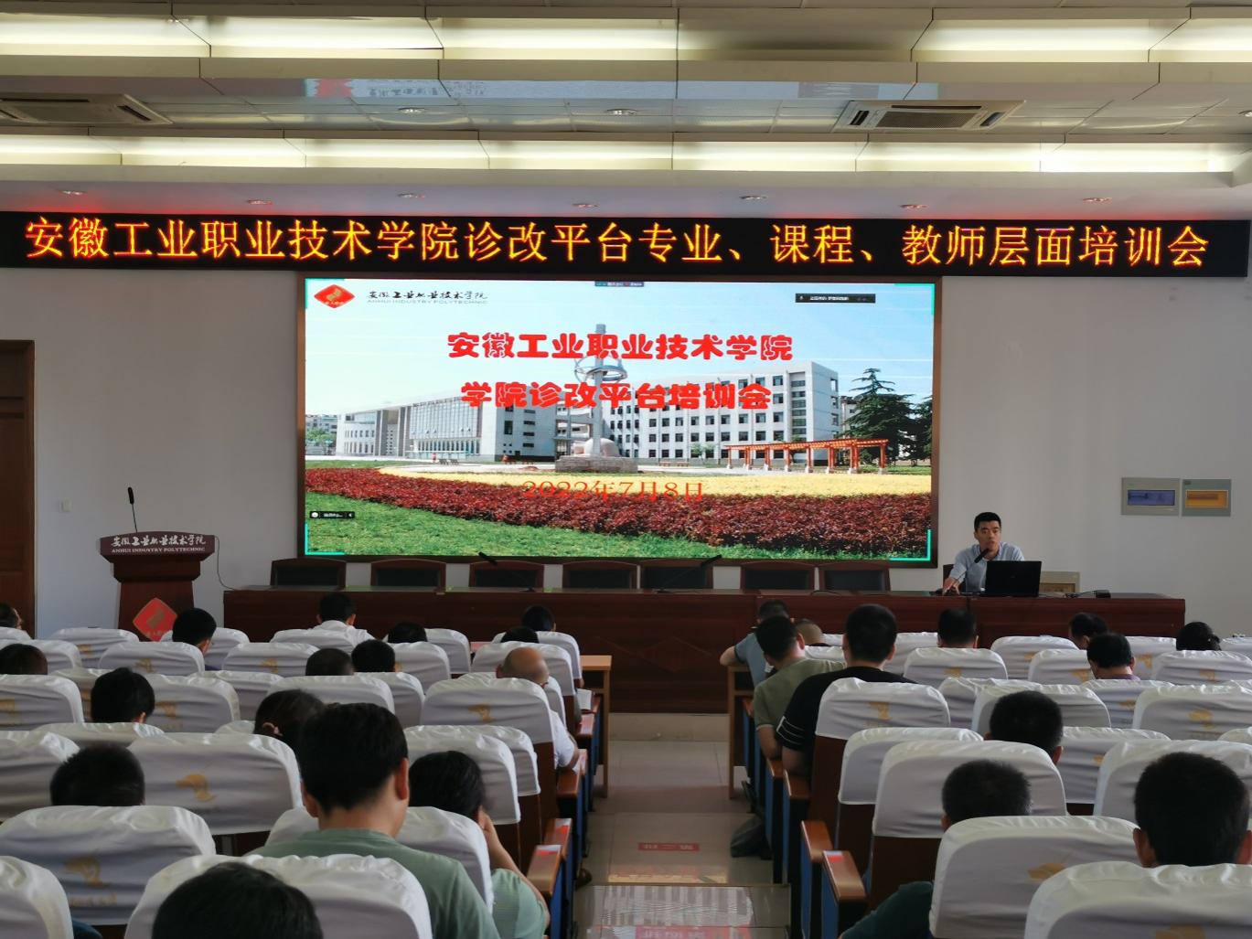 为使学院诊改工作进一步落实落细,7月8号下午,学院在教学楼201报告厅召开了诊改平台专业、课程、教师三个层面的培训会,学院党委副书记范清义、党委委员罗海峰、全体教师共计130余人参与了本次会议,会议由教务处负责人主持。