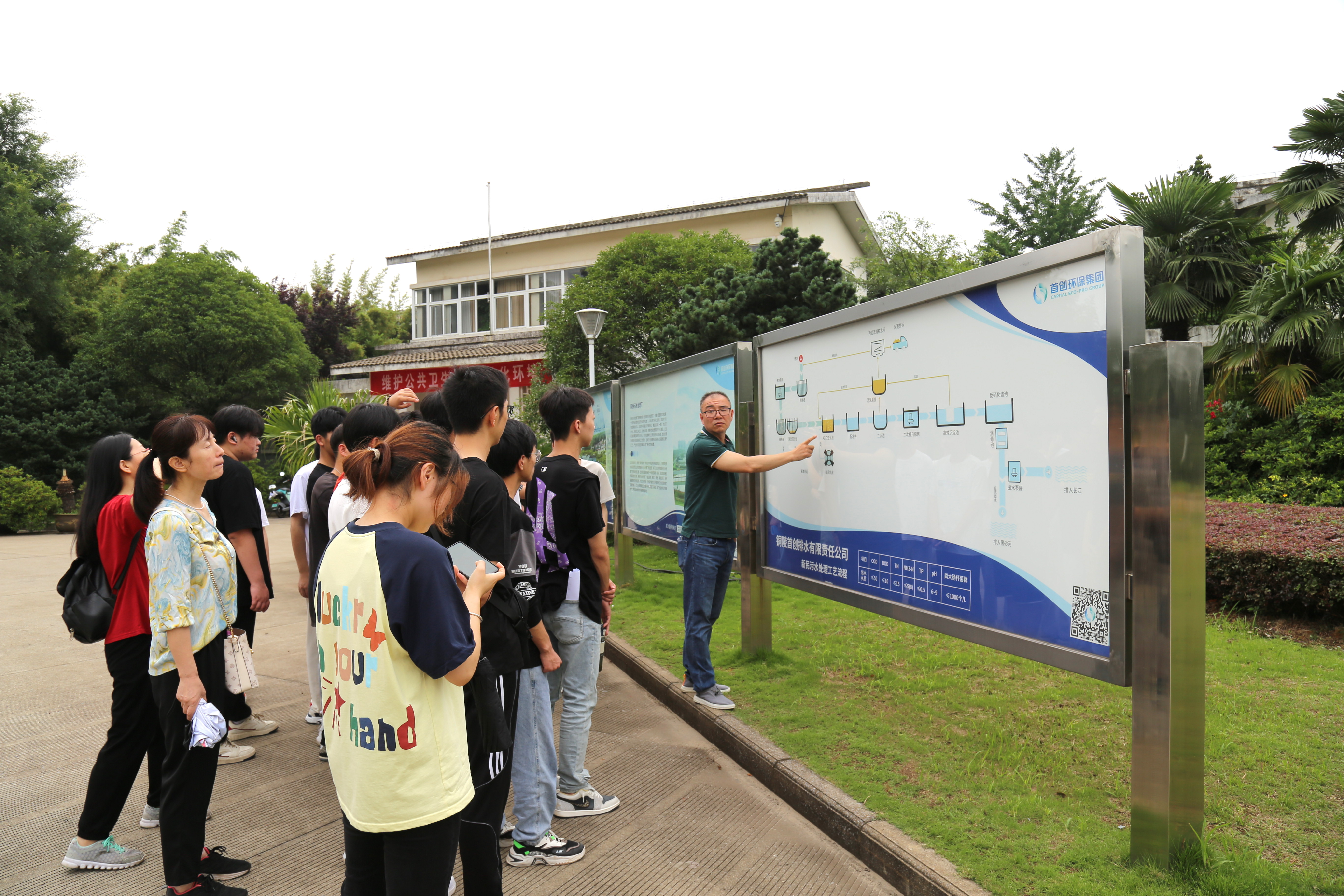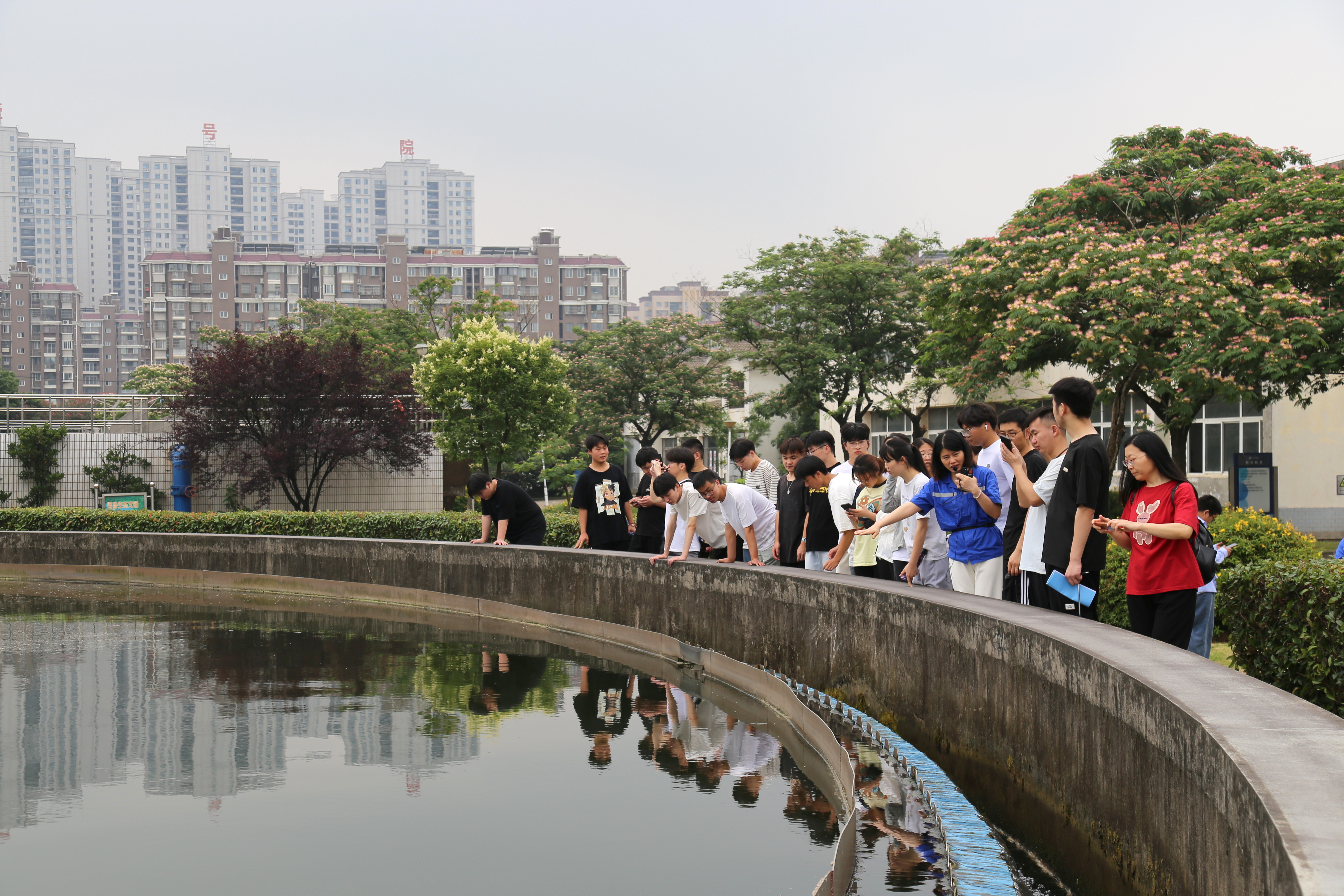 首先,童总为师生们介绍了新民污水处理厂的发展沿革及工艺流程情况。随后杨科长带领师生们进行了现场参观讲解。铜陵市主城区中心区域及铜陵县片区污水经过粗格栅、细格栅、沉砂池、生化池、二沉池、高效沉淀池、消毒池后,最终达标排入长江。