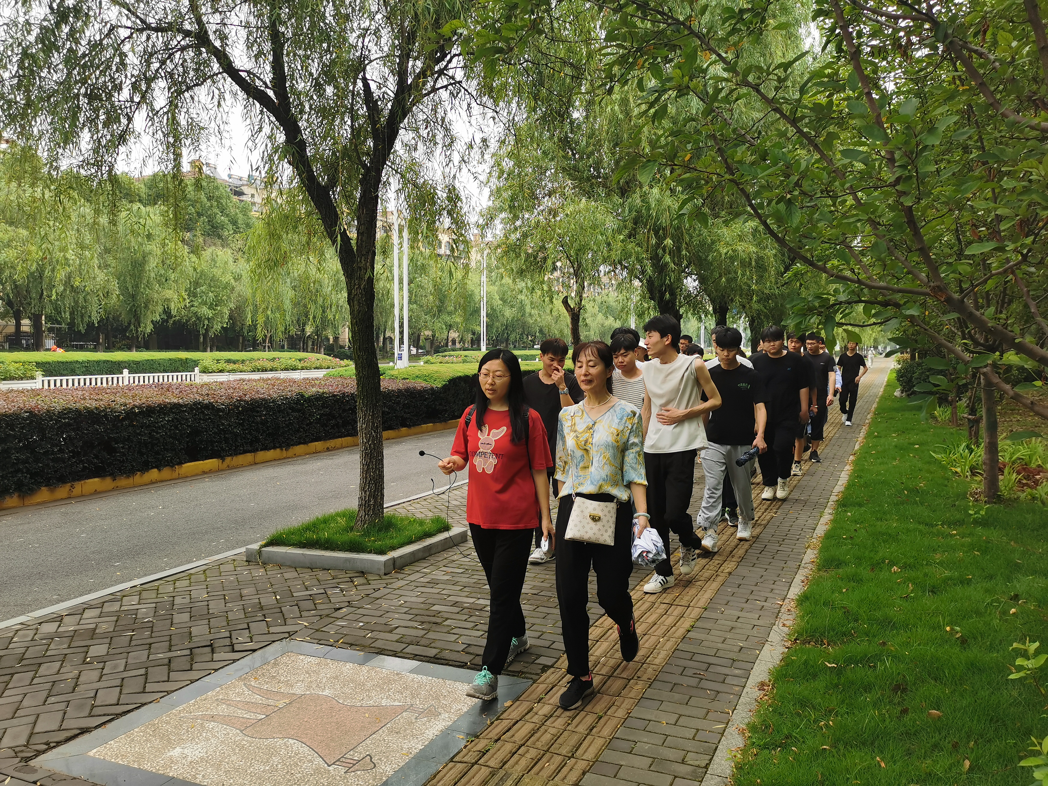 路途中,同学们排成两路纵队行进,王小英老师、弋琳斐老师走在前面为学生带路,杨书怀老师走在队伍最后,以防学生跟丢。一路上,老师为同学们介绍着铜陵市近年来市容市貌的巨大变化,同学们边走边感受着铜陵花园式步道初夏翠绿的景色,步行大约20分钟便来到了新民污水处理厂。