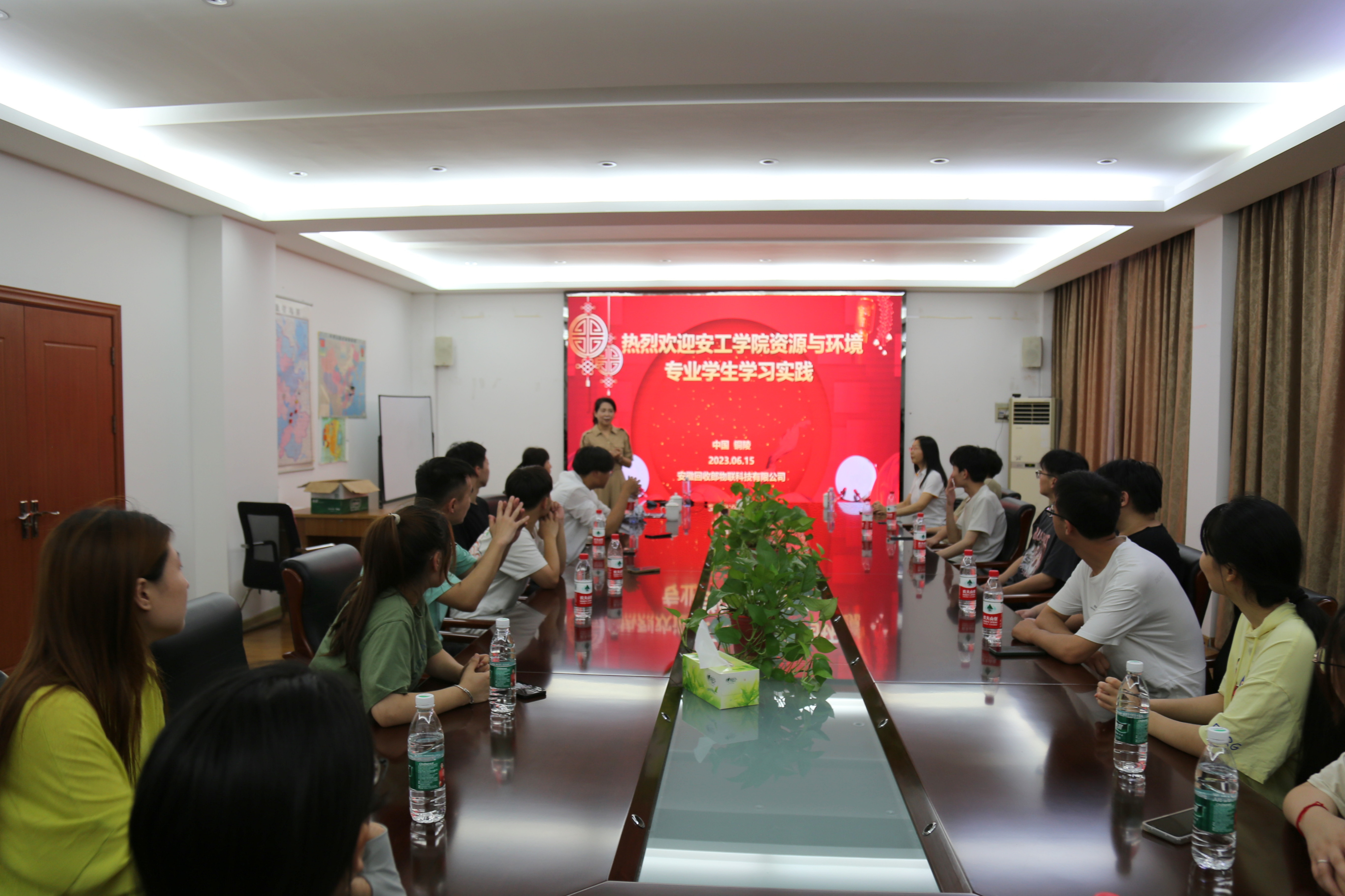 为了让师生们能够对企业及生产流程有一个更深入的了解,现场参观结束后,李总邀请师生们来到会议室,通过PPT及视频等方式,向师生们呈现一个不断成长中的中型环保企业的良好形象。同时,李总也欢迎同学们一年后来到企业进行岗位实习和锻炼,并与老师们就更深层次的校企合作进行了深入交流,提出了展望和设想。