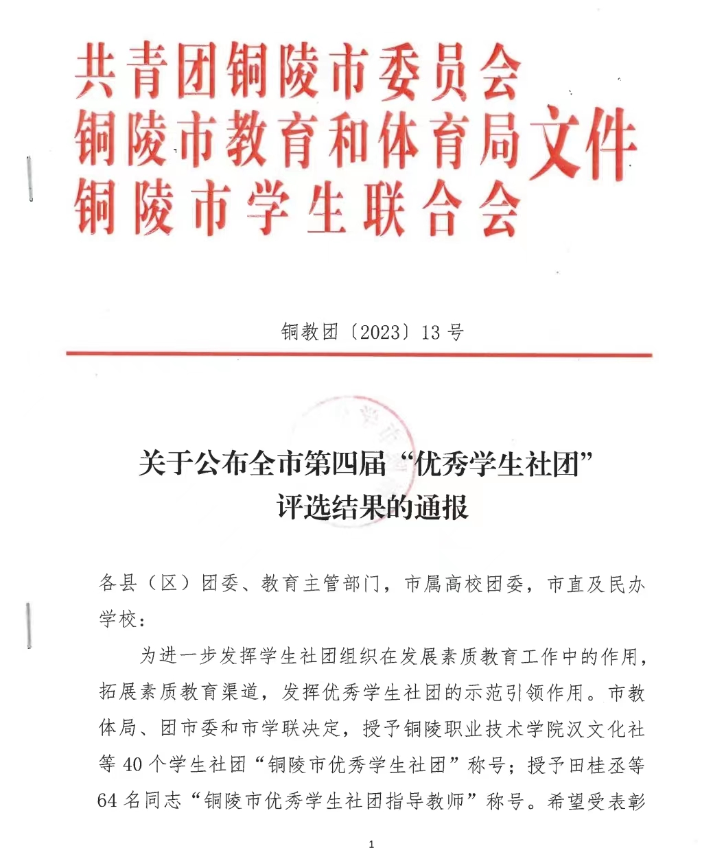 希望受到表彰的社团和教师珍惜荣誉,再接再厉,争取更大成绩,也希望学院其他社团以此为榜样,进一步加强社团内涵建设,提升社团品牌影响力,助力学院高质量发展和学生多样化成才。