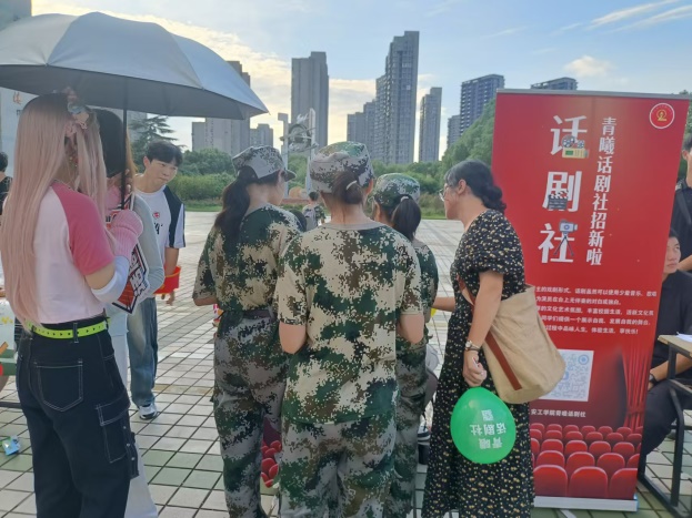 学院32个专业社团和20个艺体文化社团集体亮相,各社团负责人提前来到活动场地,按照指定位置摆好桌椅,展开社旗,发放社团宣传资料,为前来咨询的新生们详细介绍本社团的特色及过去一学年开展的活动。