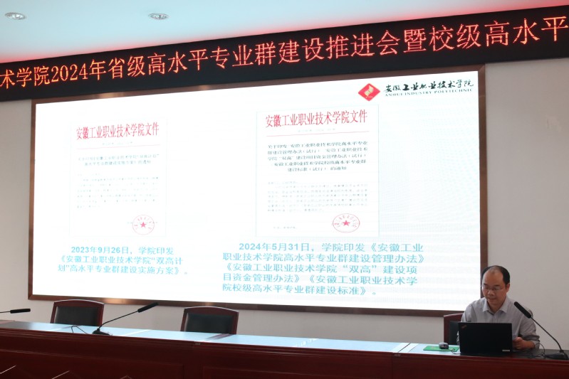 为全面贯彻落实国家和安徽省关于职业教育改革的决策的部署,提升内涵建设。10月18日下午,学院在201报告厅召开了“2024年省级高水平专业群建设推进会暨校级高水专业群建设启动会”。学院党委副书记、副院长秦华生,党委副书记、工会主席黄仕银,学院全体专兼职教师参加了会议。