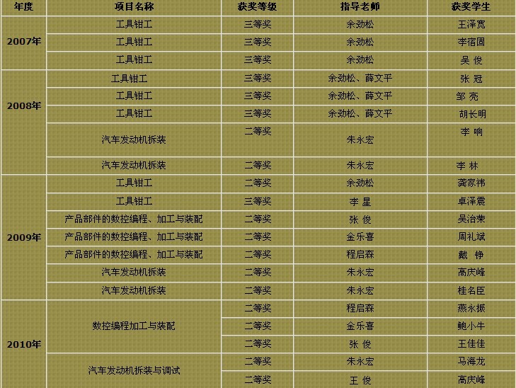 汽车发动机拆装 | 二等奖 | 朱永宏 | 桂名臣 | |