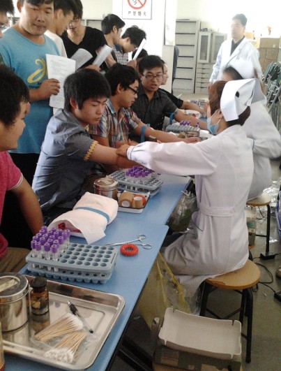 在充足的前期准备和相关部门的帮助下,活动顺利开展了。献血活动开始后,铜陵市献血中心的医生们在献血活动现场指导。安工献血小组的学生、组长、干部干事们参加了现场工作,宣传献血,维持献血现场的秩序,为学生讲解、指导献血知识并积极配合献血中心的医生的献血工作。