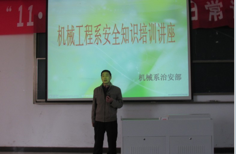 2013年11月15日,我系在阶梯101教室举办了安全知识教育讲座,出席本次会议的有院武保部金相平部长、系党支部书记方继才,以及系学生会和大一各班班干、寝室长。