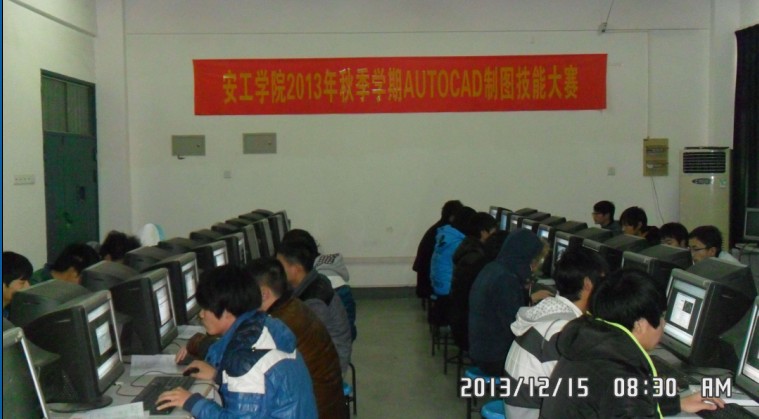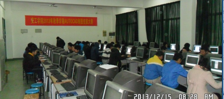 2013年12月15日在实训大楼二楼数控机房,成功举办了安工学院2013年秋季学期AutoCAD制图技能大赛。本次大赛参赛班级有我系13模具班、12数控1班、2班,12机修1、2班及电气系13机电共九个班级。