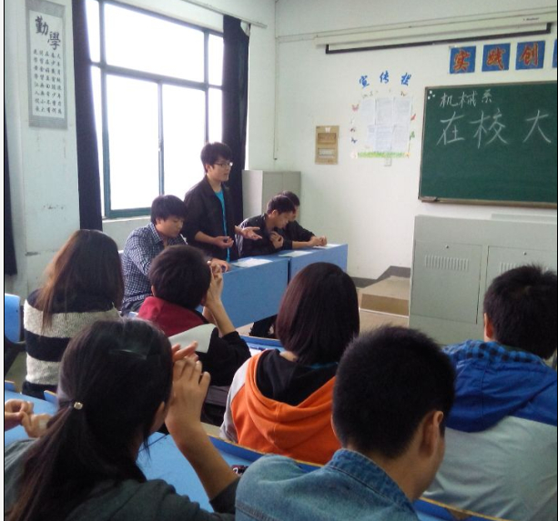 经过一个月的初赛阶段,参加决赛的是来自13模具班和13数控2班的两支代表队的8名辩手。