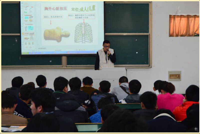 为进一步提高广大青年学生防灾避险、自救互救能力,推进社会公共安全体制建设,机械系联合市红十字会于3月27日下午举办了以“应急救护进校园”为主题的应急救护知识安全讲座。本次讲座邀请到铜陵市紧急救援中心全国基本急救技能导师张信医生。机械系各班级选派优秀学生干部、 青年志愿者参加了此次培训讲座。