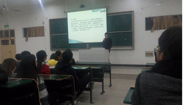 2015年12月23日晚七点,机械系在阶梯102教室成功的举办了模具专业知识讲座,讲座邀请到了安徽耐科挤出科技有限公司工程师潘辉,本次讲座的主题为:挤出模具相关技术介绍及前景。 14模具和15模具两个班级70多名同学聆听了讲座。