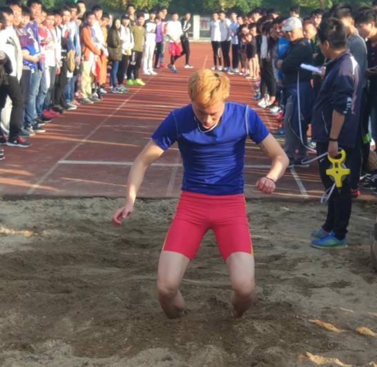 跳远比赛中,我系运动员韩兵多的男子组桂冠