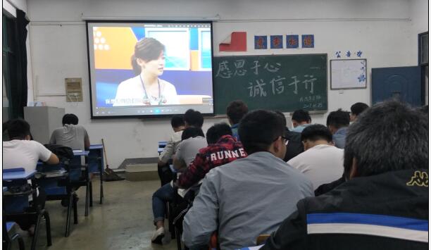 2017年4月19日---4月28日我系各班级举办了“感恩于心诚信于行”诚信教育主题班会。诚信教育主题班会内容为:观看《贷款助学信用助人宣传片》、《国开行助学贷款宣传片》、《校园贷悲剧》教育视频、国家助学贷款和各类奖助学金政策宣讲,通过视频学习使学生深刻认识到诚信的重要性。